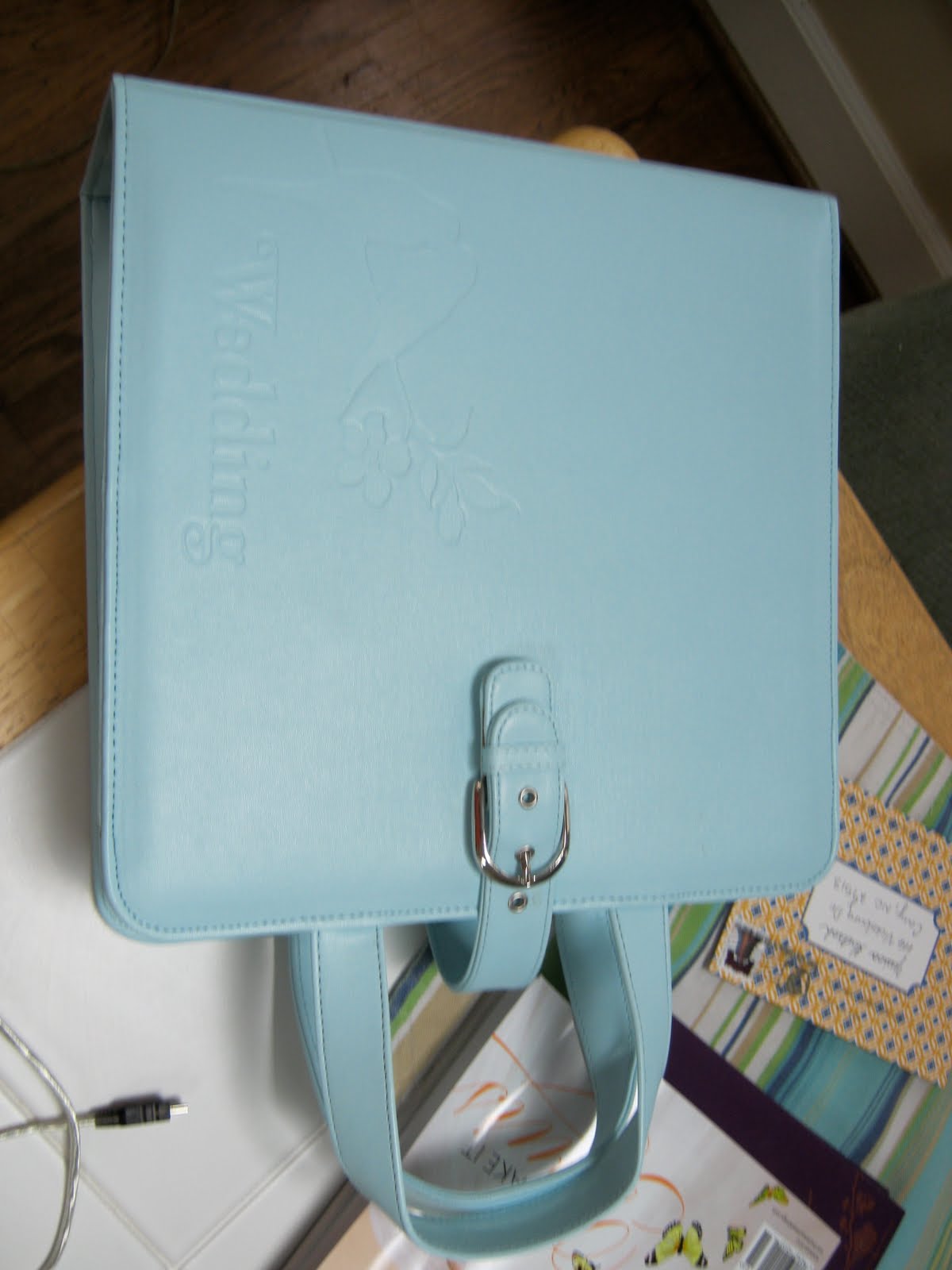 Now that I’m back there should be a lot more going on on the wedding frontier. Knowing that the first thing on my to-do list was to find some sort of binder to organize all my notes, magazine clippings, fabric swatches, phone numbers, etc. and I casually mentioned that to Christopher over breakfast (Chic-fil-A breakfast, one of the things that really sets America apart.) His reply was that he was pretty sure someone had already mailed me one! I was super excited to rush home and find this: