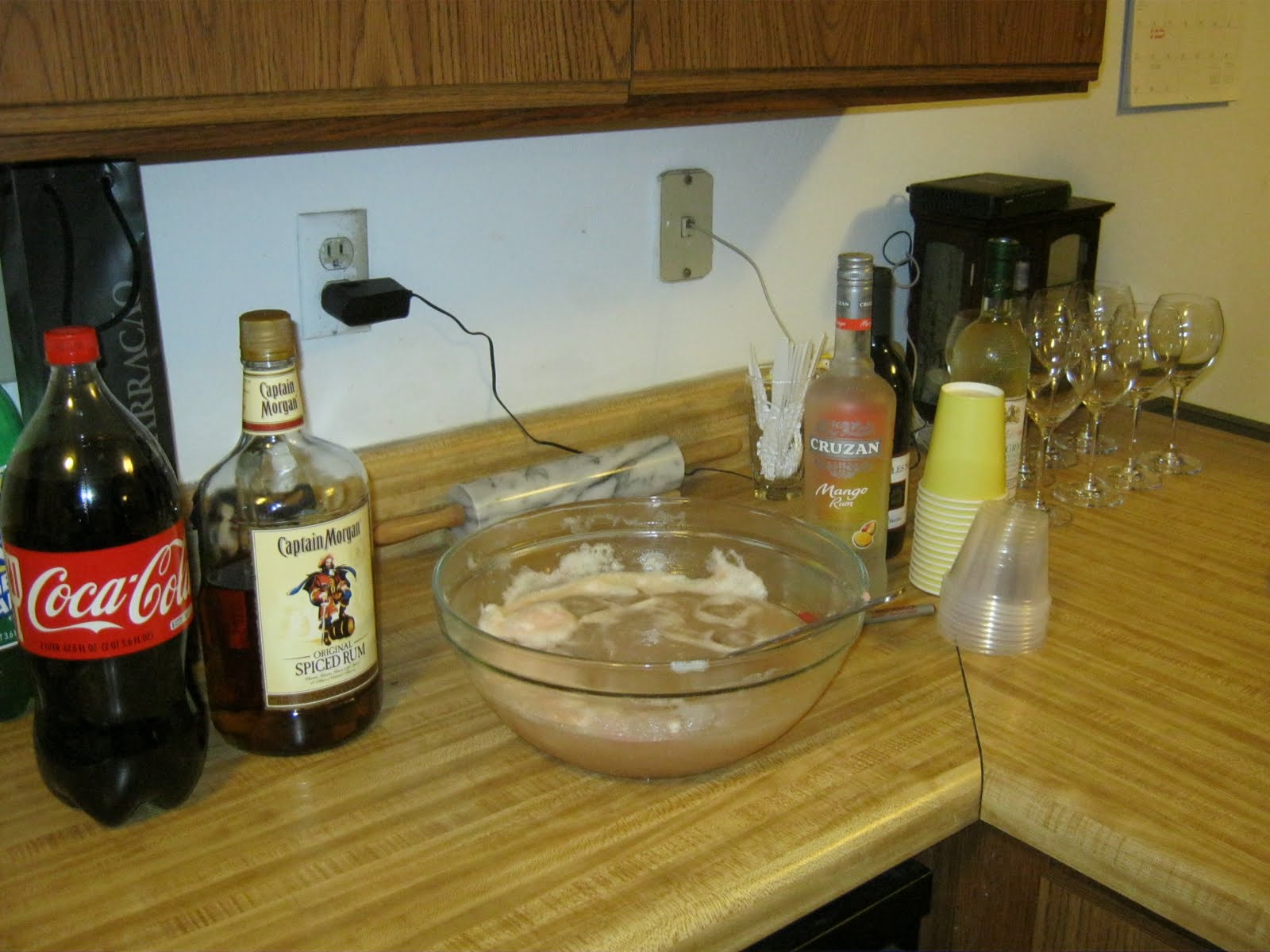 Delicious punch. Ginger ale + pineapple juice + rainbow sherbet + mango rum.