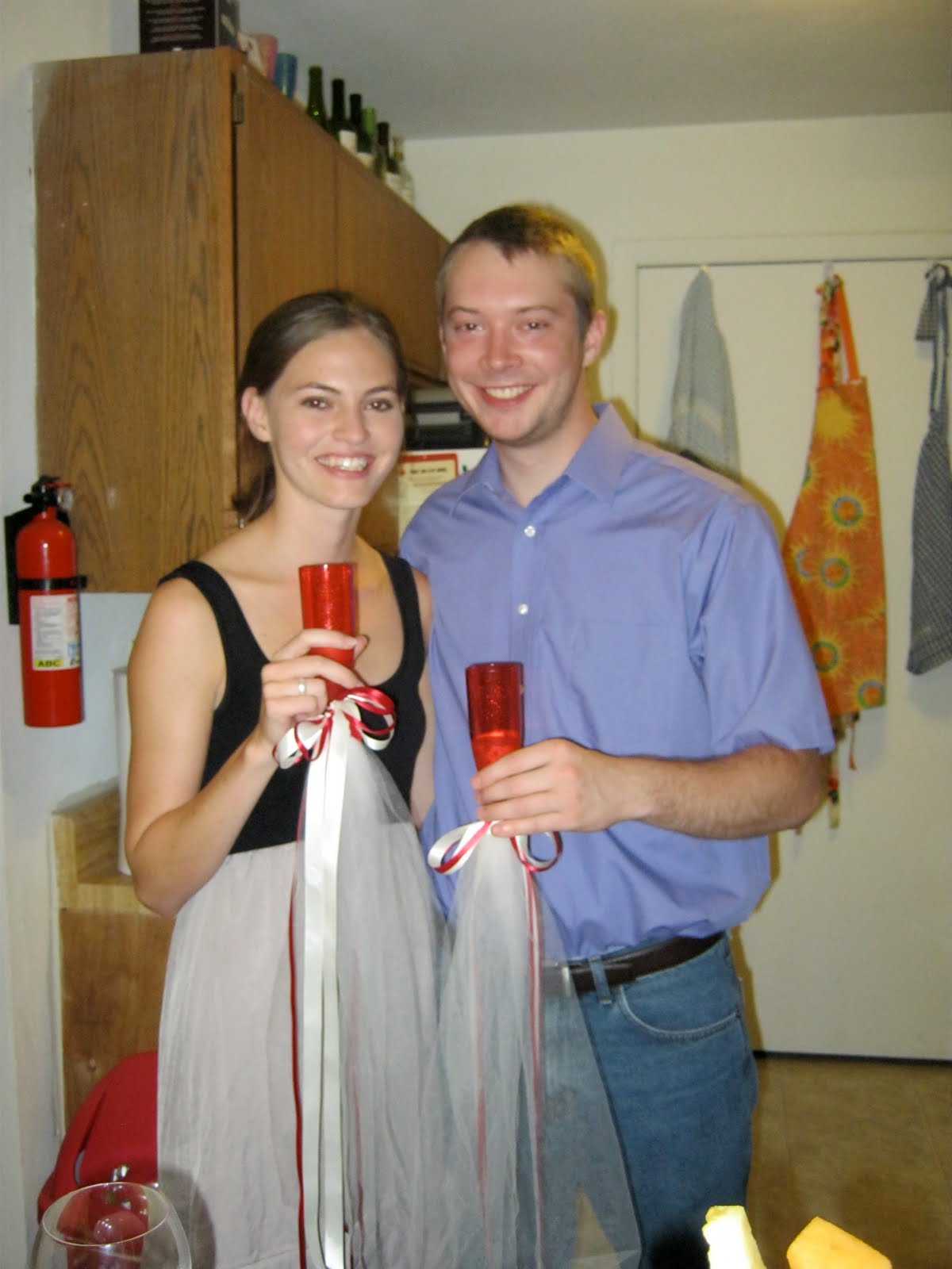 Our fancy toasting champagne glasses! I may just wear one on my head as a veil.