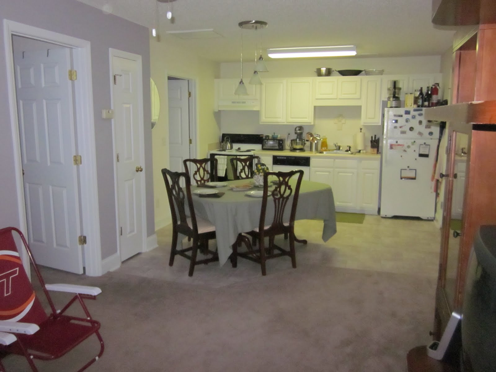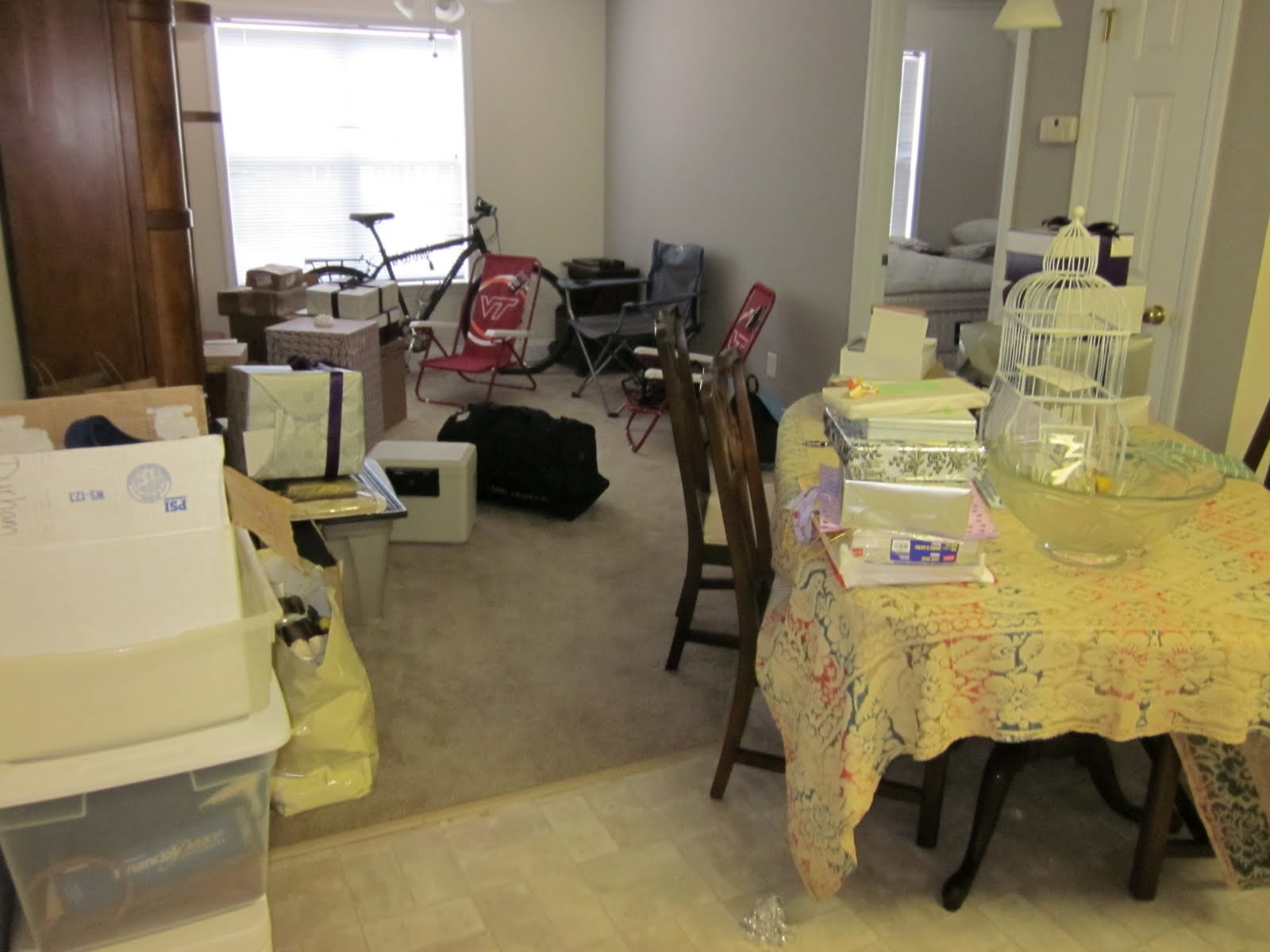 So the first thing that created us when we got to our new apartment was a gigantic mess. A combination of things from my Blacksburg apartment that hadn’t been put away yet and all of our wedding presents and we could barely walk through the place. Just a week later though we’ve turned it into this:You can see that we’ve started a gallery wall and the plan is to do black frames mixed with unframed canvas. The fingerprint tree from our wedding is up and we absolutely love how it turned out.
