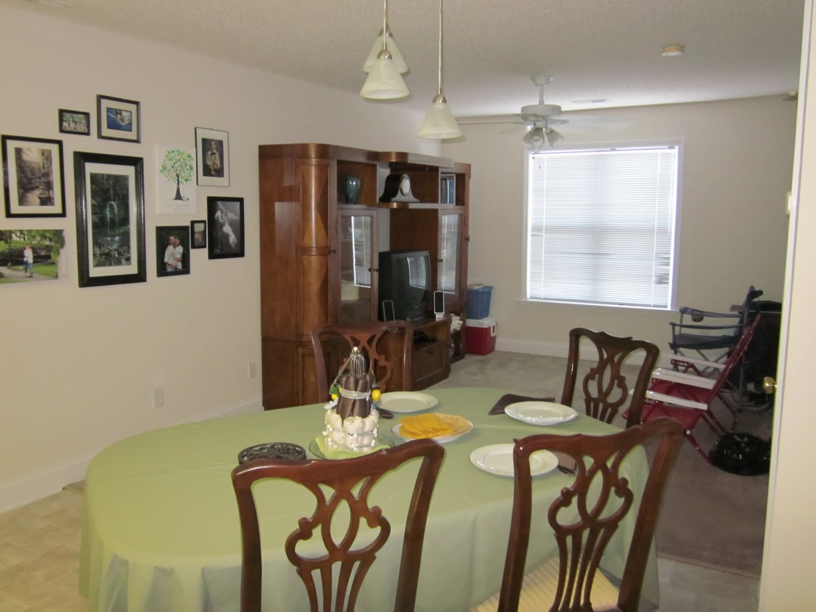 In this picture we’ve got the table set for our very first dinner guest and you can tell that we were using our china and silver for tacos.