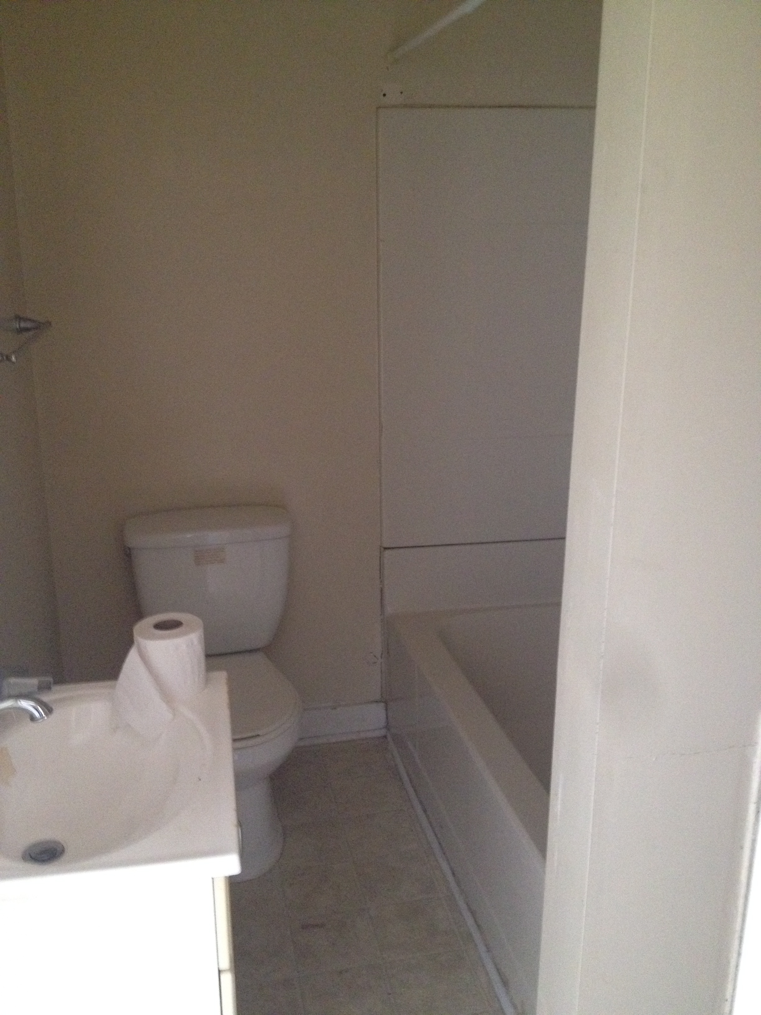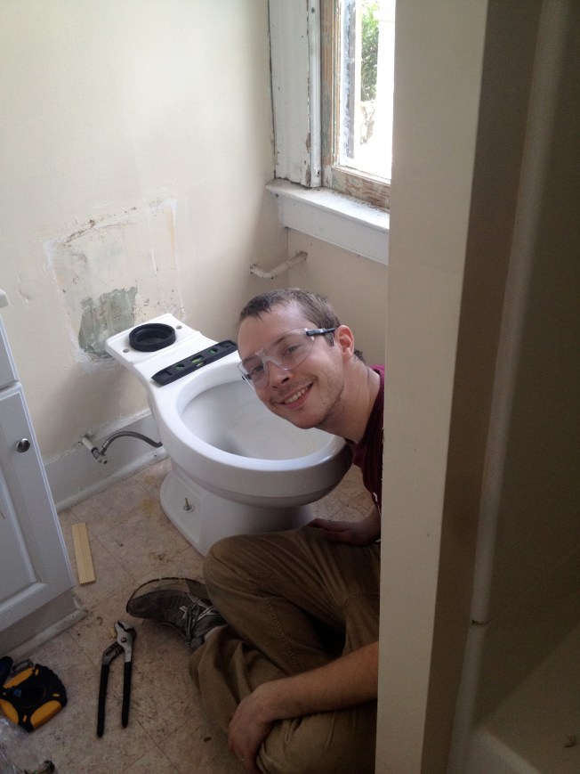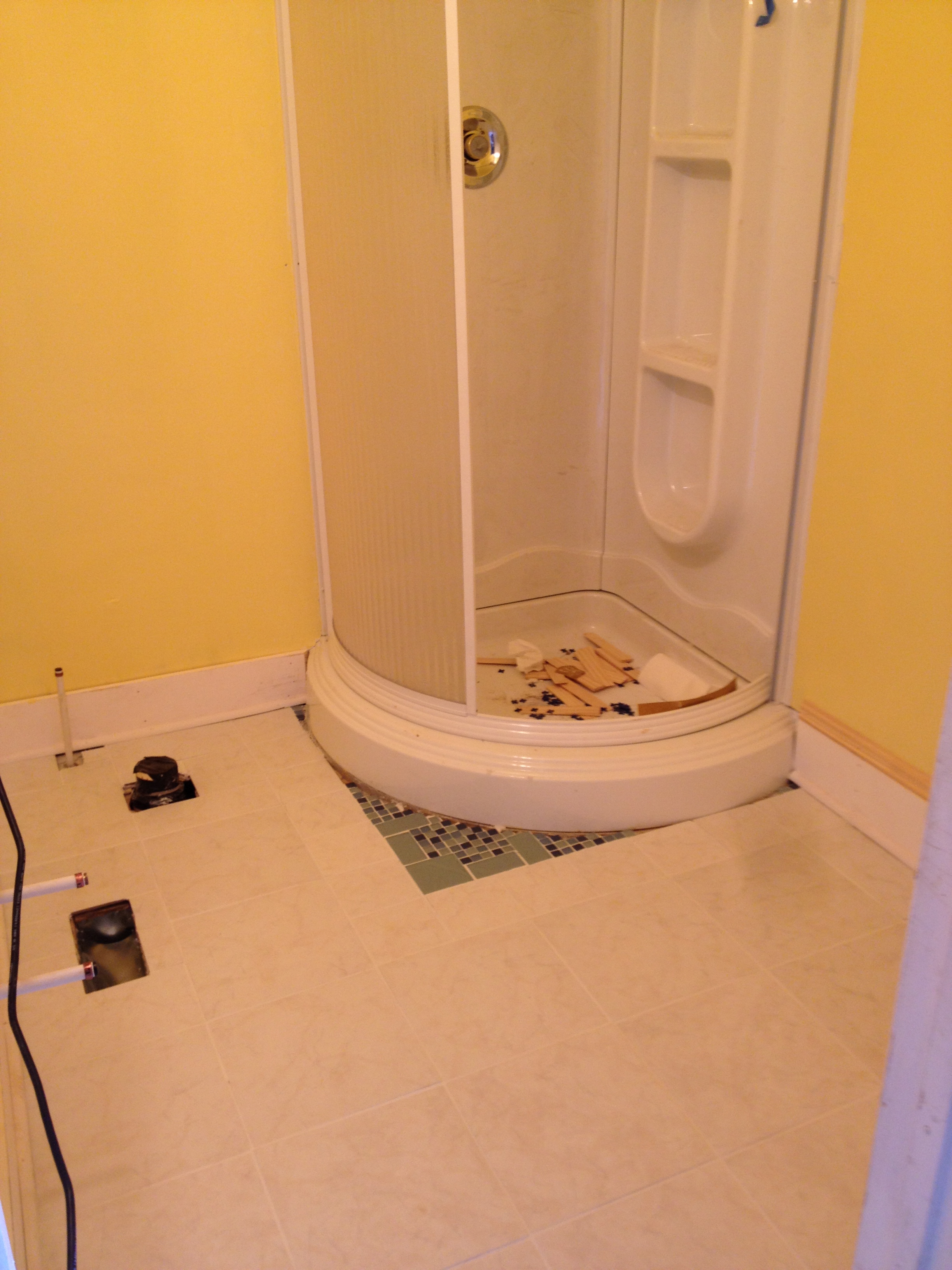 The second thing we bought was a stand alone shower. Since we’ll be living exclusively on the first floor for a bit (renting out the upstairs units) we couldn’t get rid of the shower altogether, but we don’t think we’ll be missing the bath portion. We went for a rounded unit because we thought it would make the room feel bigger (Although Chris says we don’t want it to feel bigger, we want it to be bigger.)