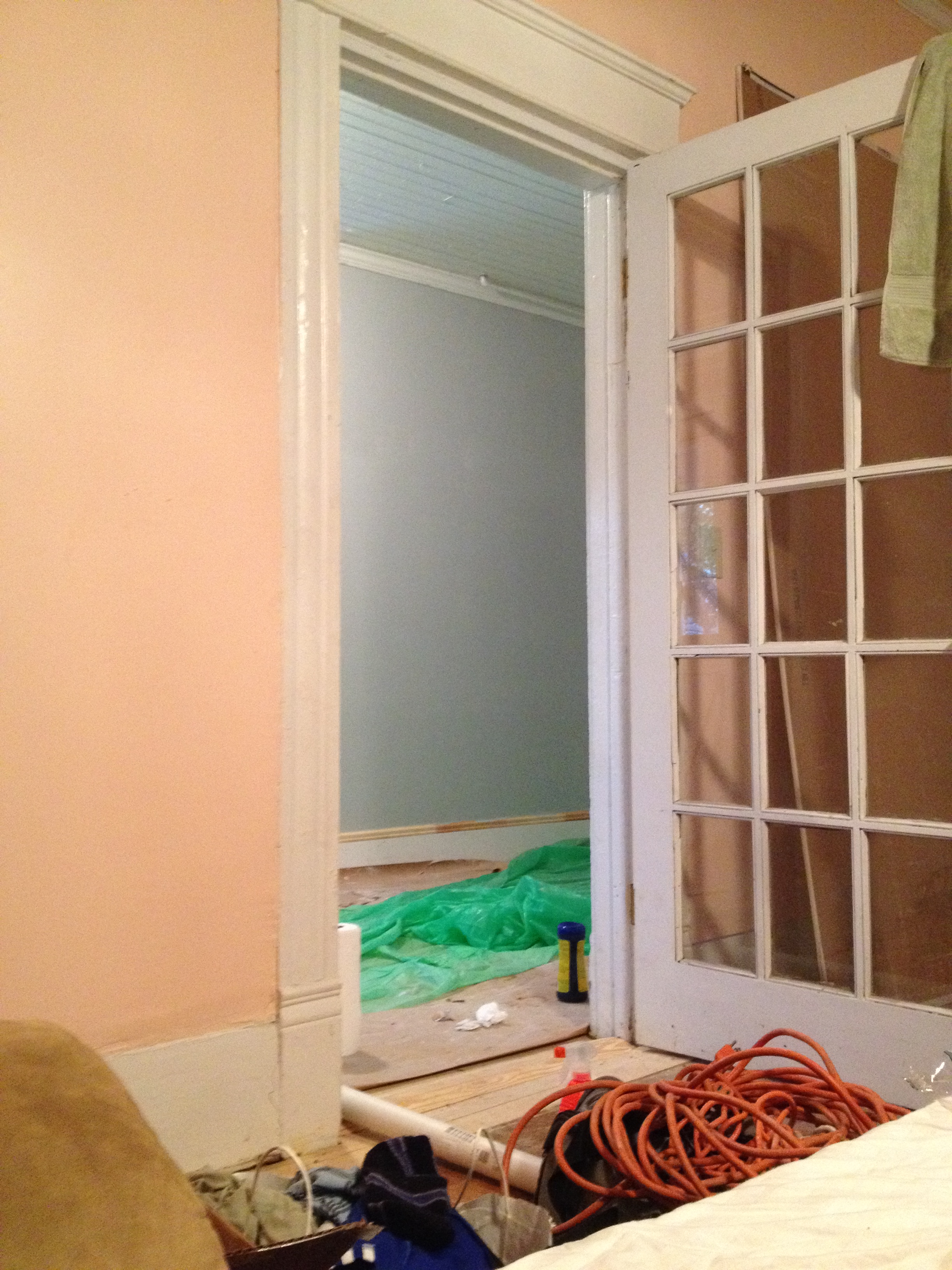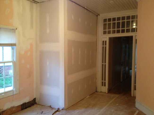 The contractors installed the baseboards, I’m not sure if they’re going to finish the left side to match the right? Hopefully.