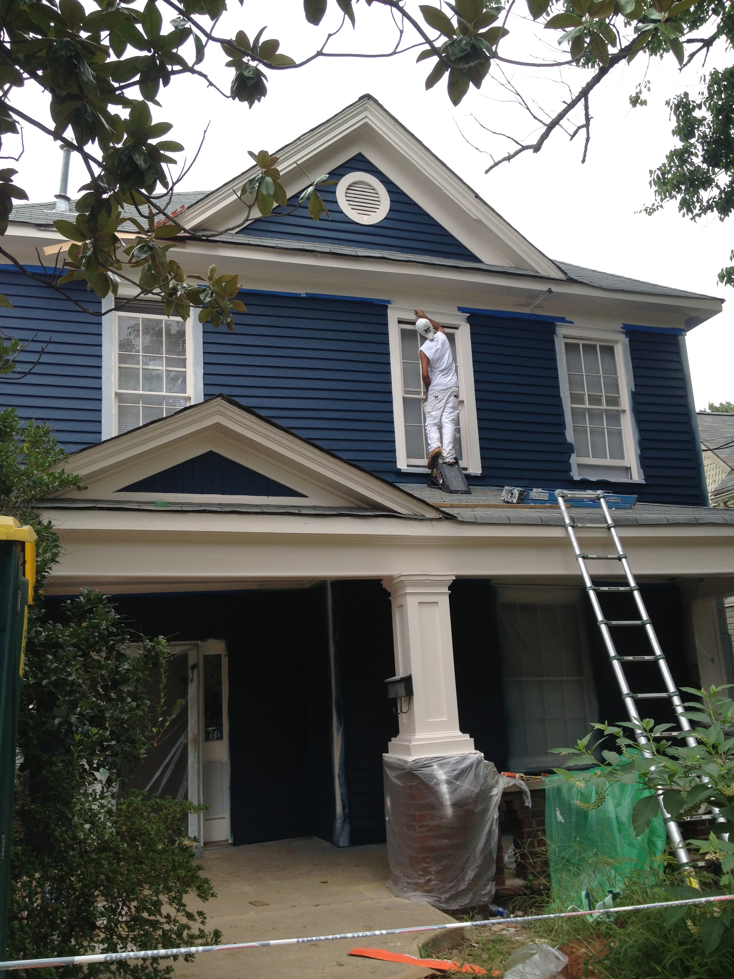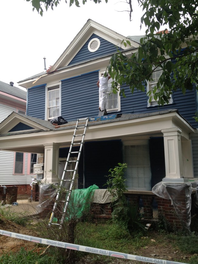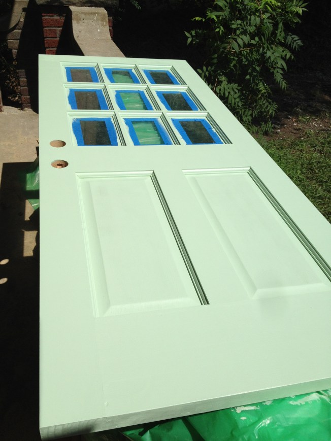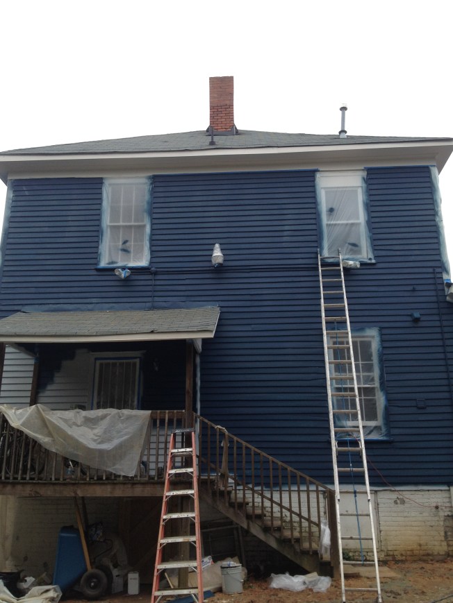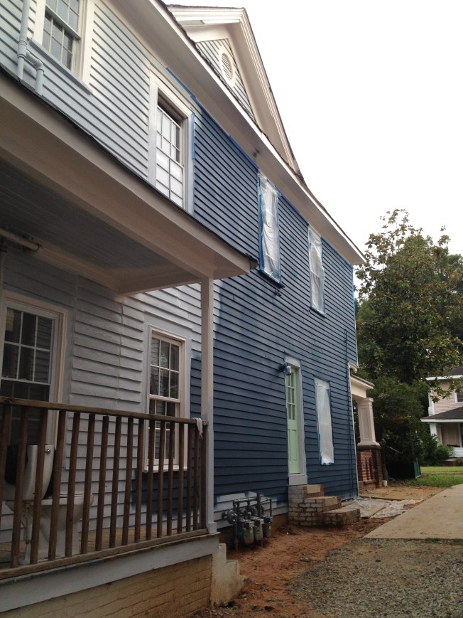 The yellow we picked out is one of the historic colors Valspar does, based on the Homestead Resort where we spent part of our honeymoon. I’m going to have to replace the light in here with something whiter, but I’m really quite pleased. We painted before the grout since we’ve heard it is easier to clean paint off the tile then the grout.