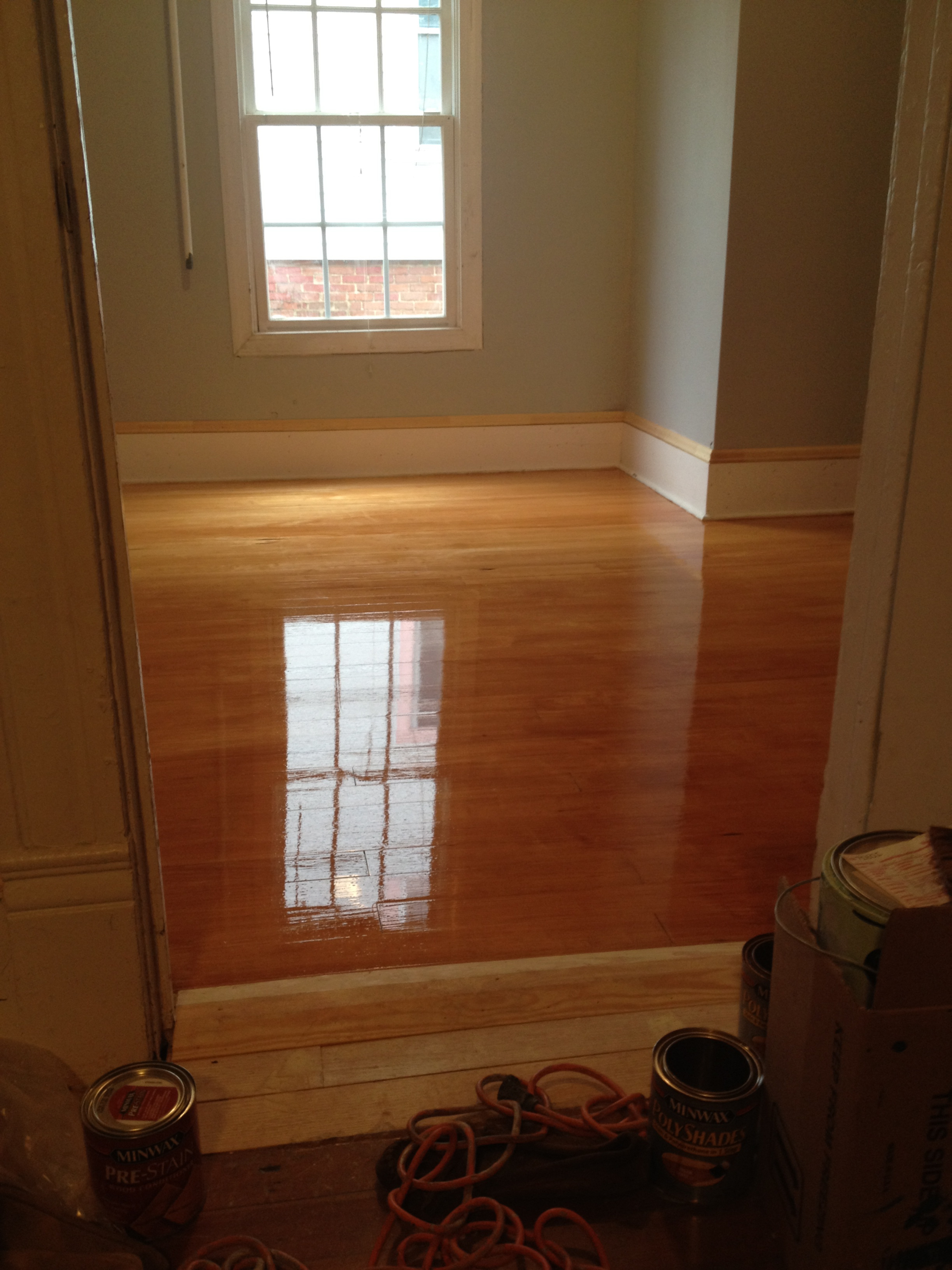 We did have lots of little projects to finish this week, including finishing the floors, finish painting the foyer, painting the entrance way to the second floor, putting a threshold into the bathroom, etc. We did a lot of work this week and were very pleased to pass the inspection.
