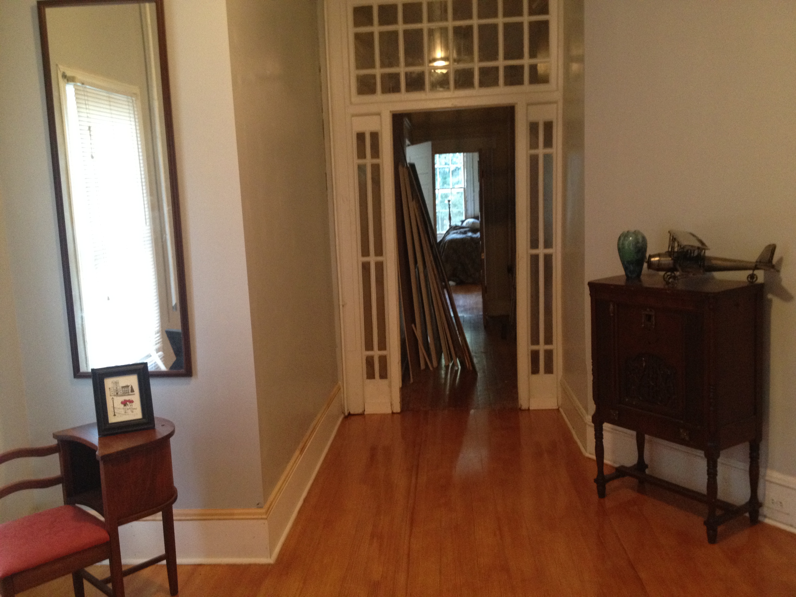 The foyer! Walls painted and some furniture/ decorations starting! and… what’s that in the back room? A BED? We totally slept on it last night and it was a 800% improvement to the pull out couch!