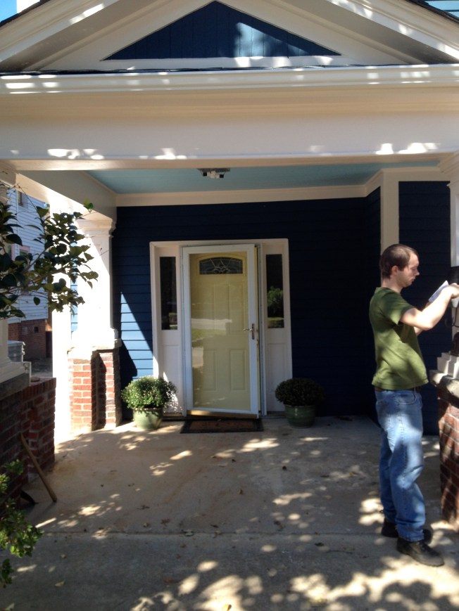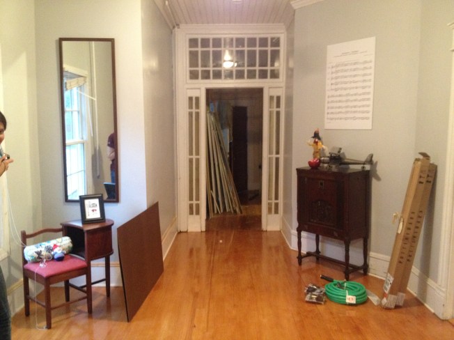 Mary Kyle and Annie came over to work on Pinterest projects and I made my giant sheet music wall hanging. It’s “Autumn” from Vivaldi’s “Four Seasons.” I also made one for winter, so I should be set for 6 months. We need to get all the screens out of the hallway, I think we’re going to donate them to the Habitat Restore here in Durham. The foyer is my favorite room so I’m trying to come up with the exact right things to put in there.