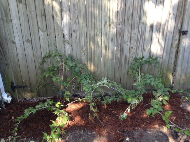 Transplating my black raspberries out of the container they lived in this summer. They’re looking a bit floppy but they bend over and plant shoots, so I think they’re OK.