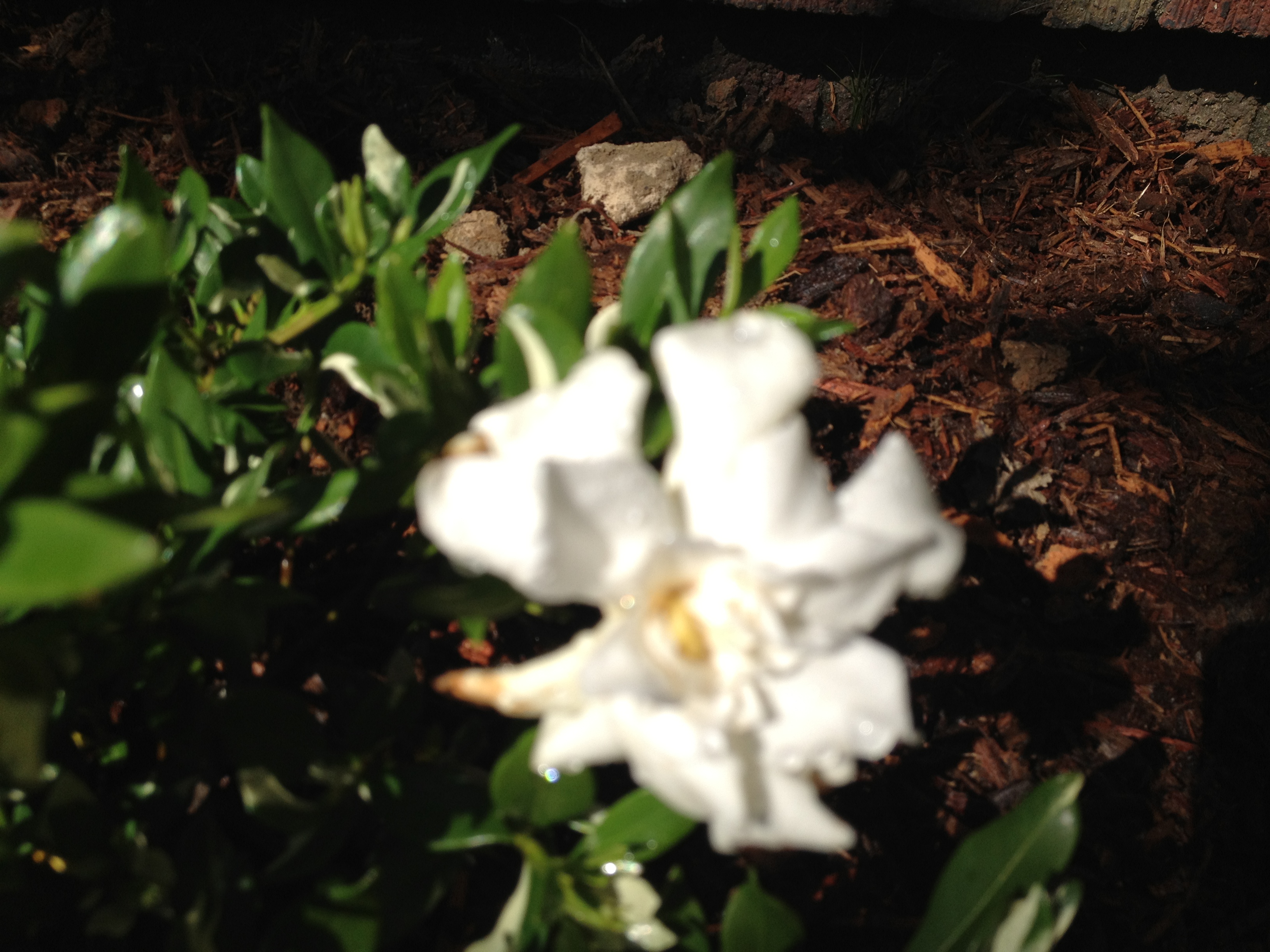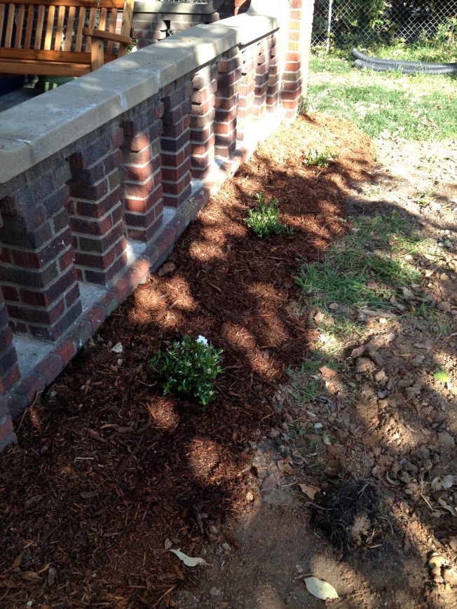 Gardenias, once again we ran out of mulch. Chris also put Rye grass seed down in the front yard. Apparently it will help prepare the soil for us to put down sod in the spring.