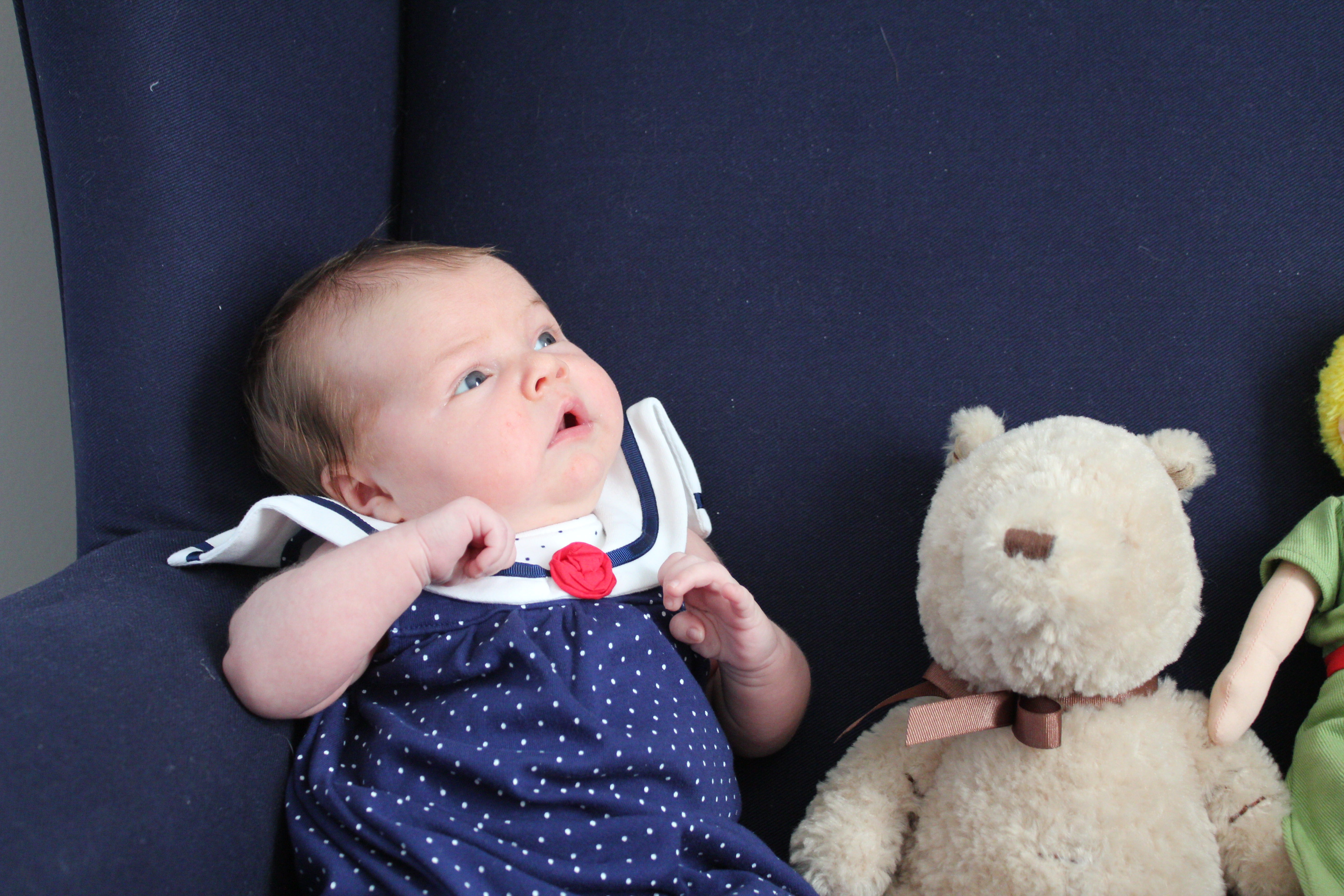 Oct4 Almost 4 weeks Posted on 2013-10-04 by magnetsfromeverywhere Standard 2 days shy of 4 weeks old and Helen Jeanette rolled from her belly to her back this morning. Pretty impressive considering she’d only been laid completely flat on her stomach twice– most of her tummy time has been on Mommy while she reclines.
