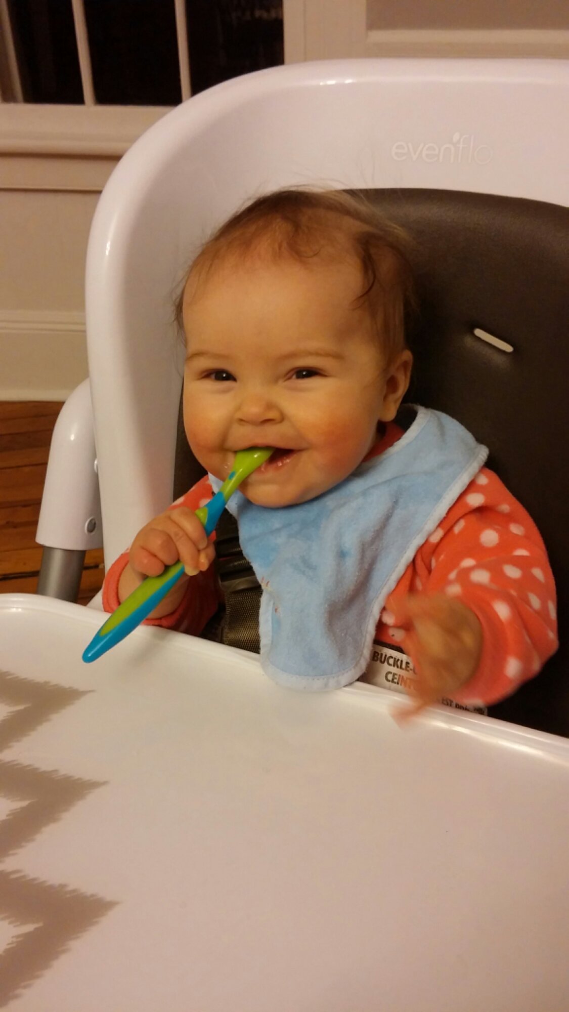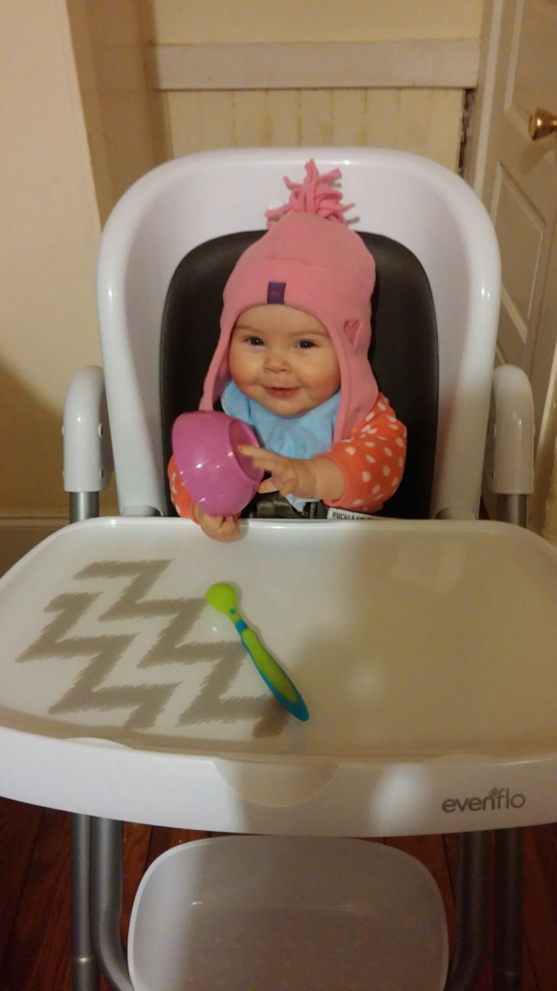 We ended up moving her 6 month milestone up 4 days because I’ll be spending my first night away from her Thursday and we wanted something to supplement my unimpressive freezer stash. I’m also pumping around the clock until then.