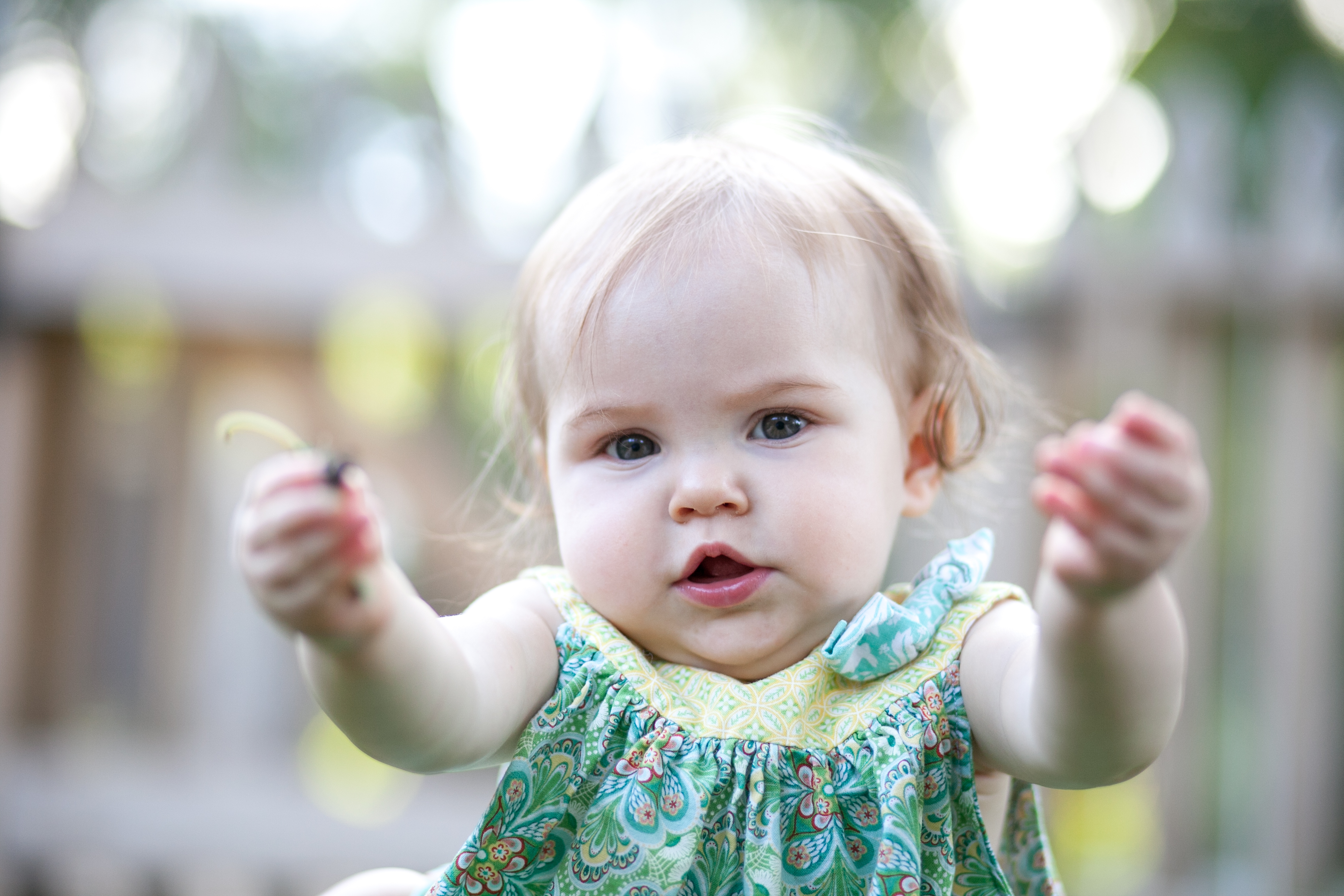 She’s really exploring the world of food and has yet to turn anything down, although somethings give her a very peculiar look while she eats. Watermelon for instance gives her this face that says “This is completely disgusting” while she’s chewing, but as soon as she swallows she smiles and opens her mouth for more!