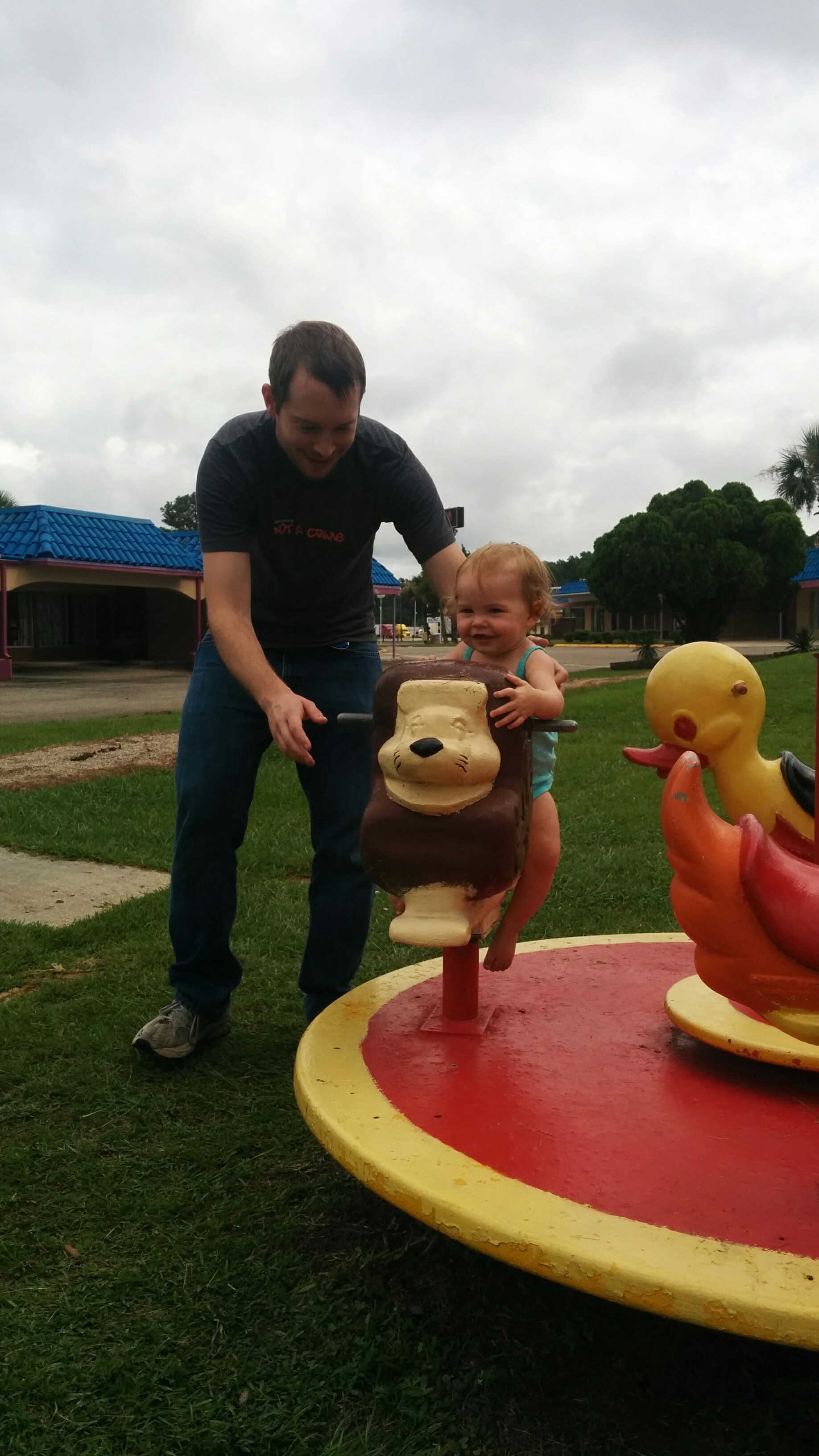 Aug3 Posted on 2014-08-03 by Cov Standard The south of the border playground looks like the set of a horror movie. We immediately decided the play gym, slide, and see saws were not safe enough. She was able to ride the lion though and had a good time.