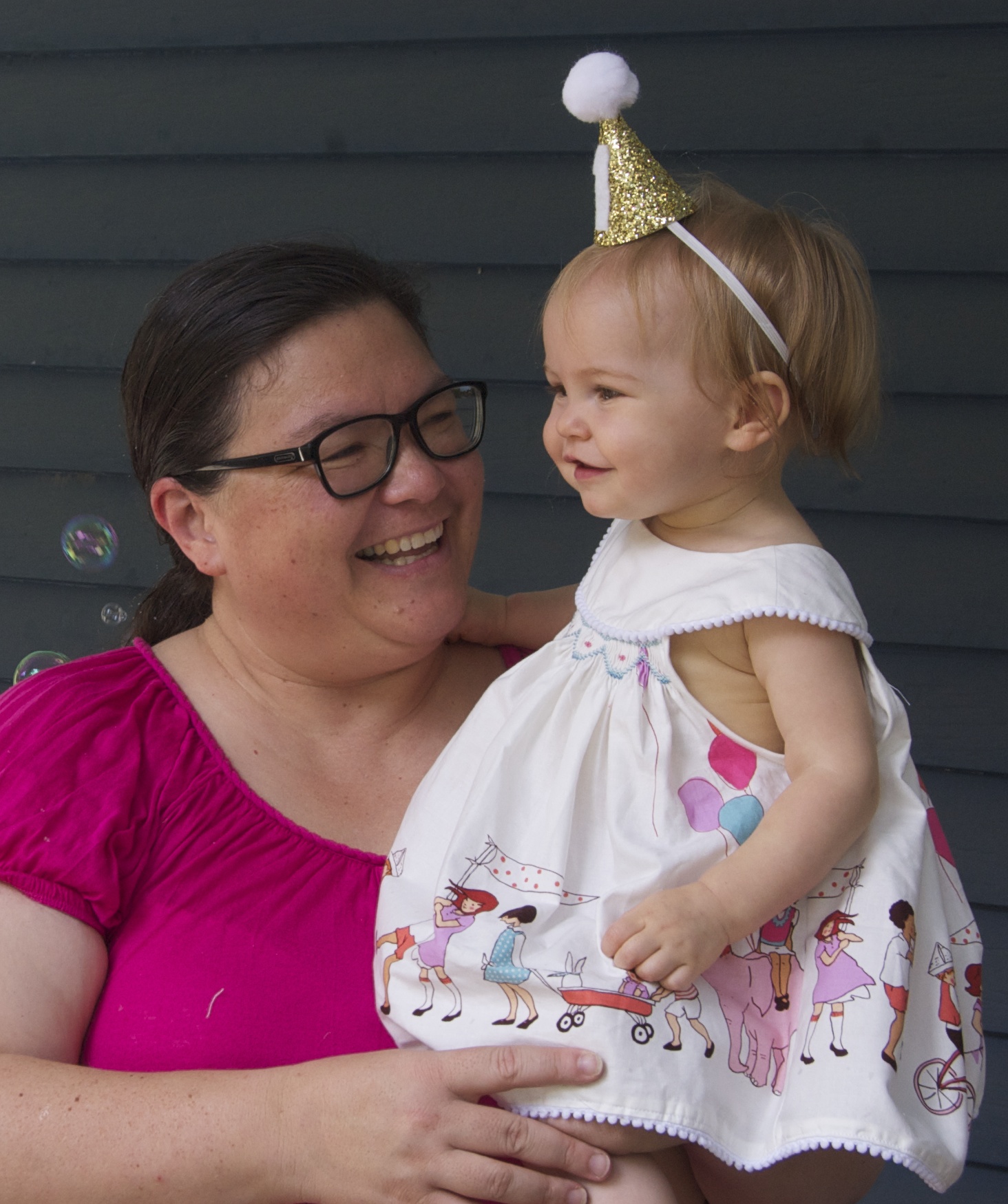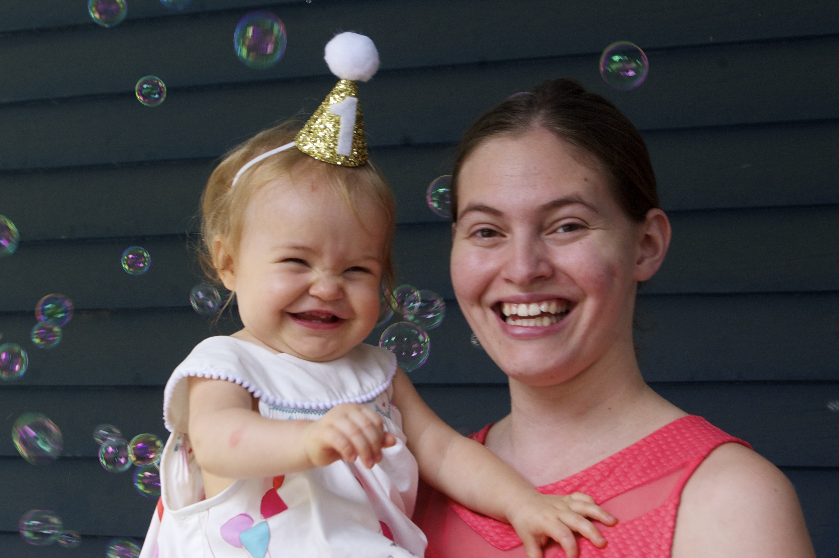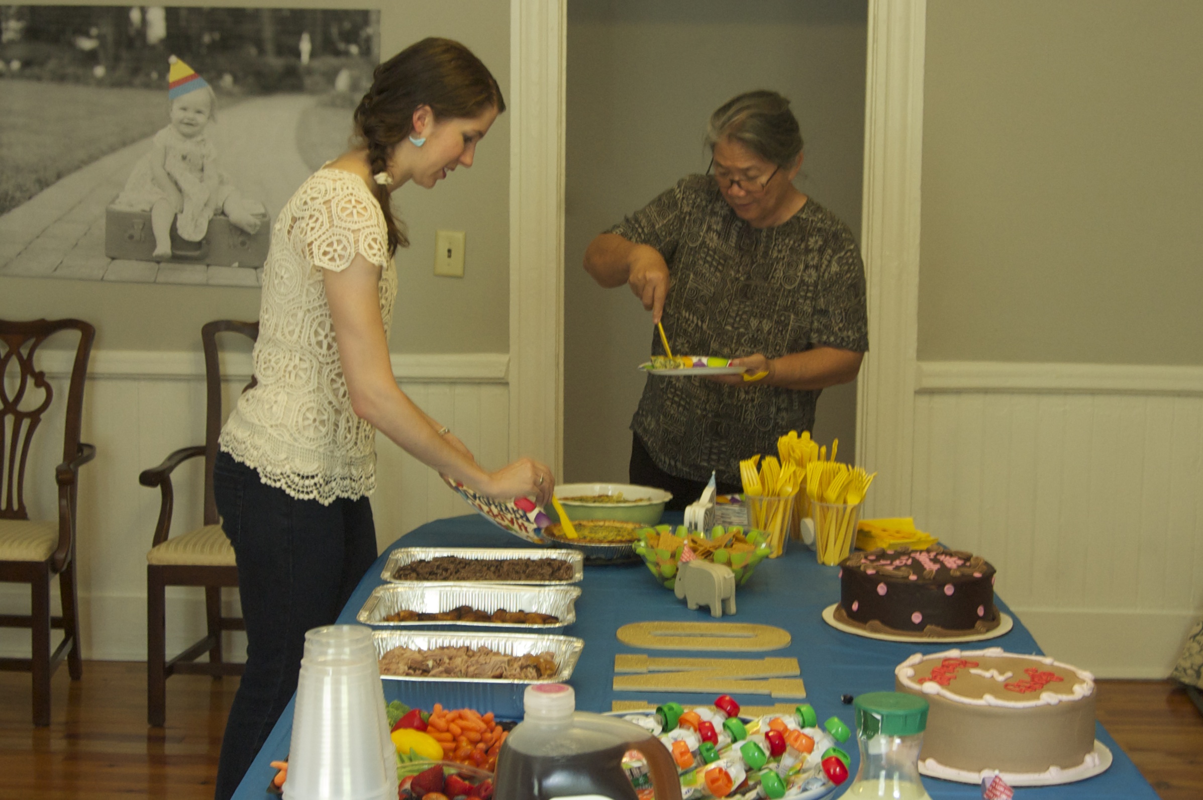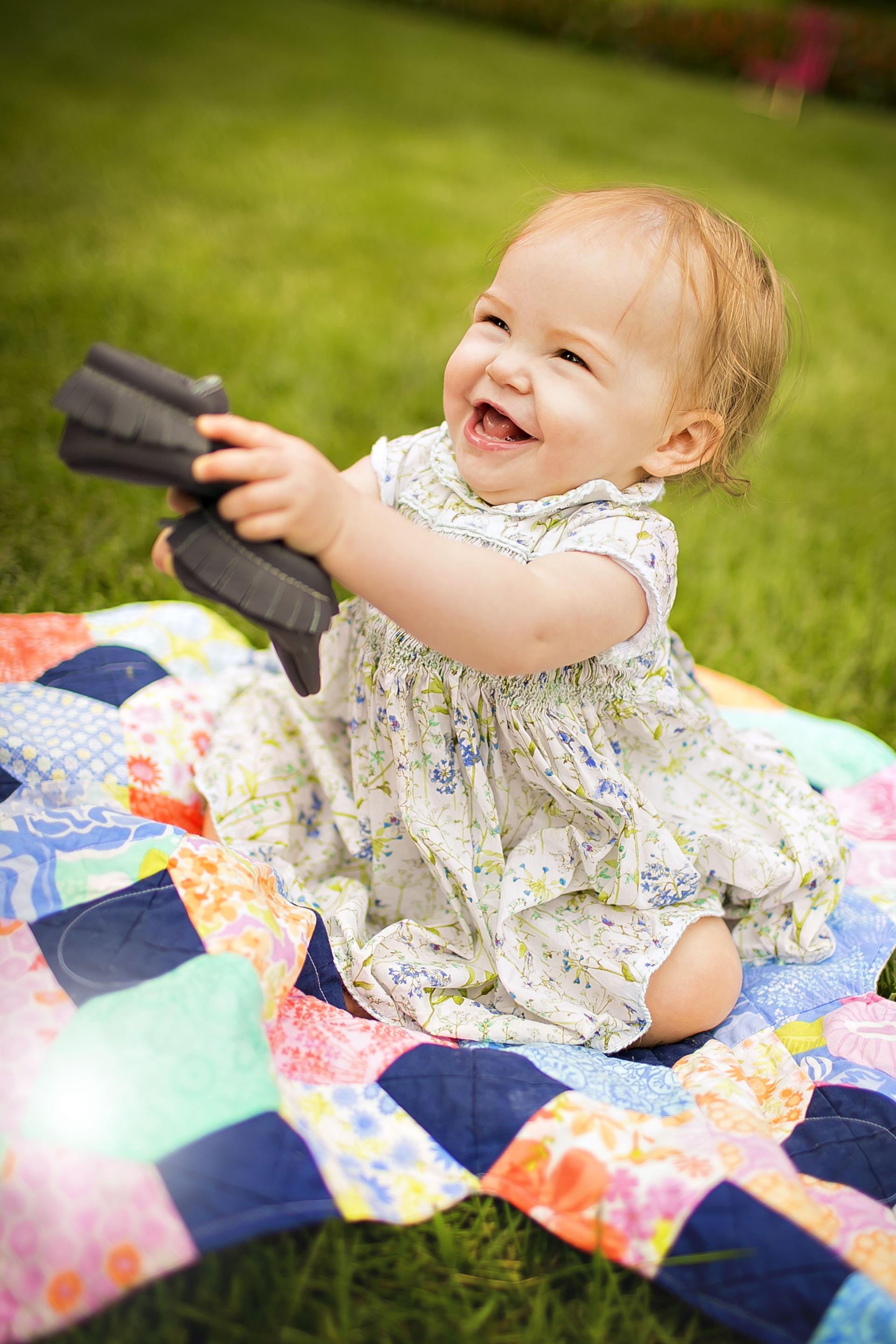 My Pampa took pictures today and they’re all on facebook as well. She had a great party with lots of family and friends. It was a bit chaotic and she was a bit overwhelmed by the whole thing but she took it in stride and kept smiling through the whole thing. She received a lot of presents and did not seem to understand the concept of opening them at all, but she happily went through her new toys giving each of them a shining 5 seconds of attention before turning to the next present. I decided the best route was not to linger on each present but to bulldoze through the rather large pile since everyone was gathered around standing to watch.