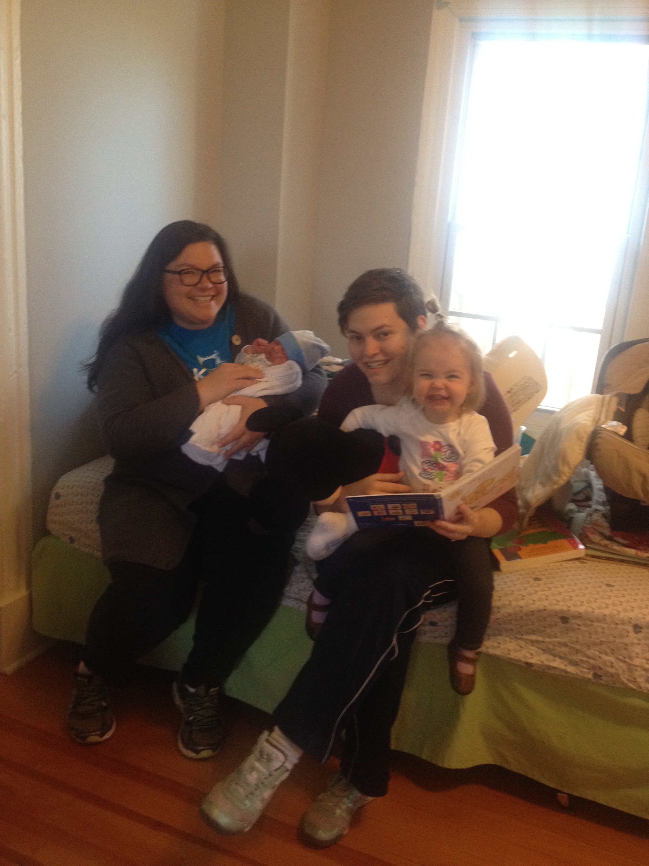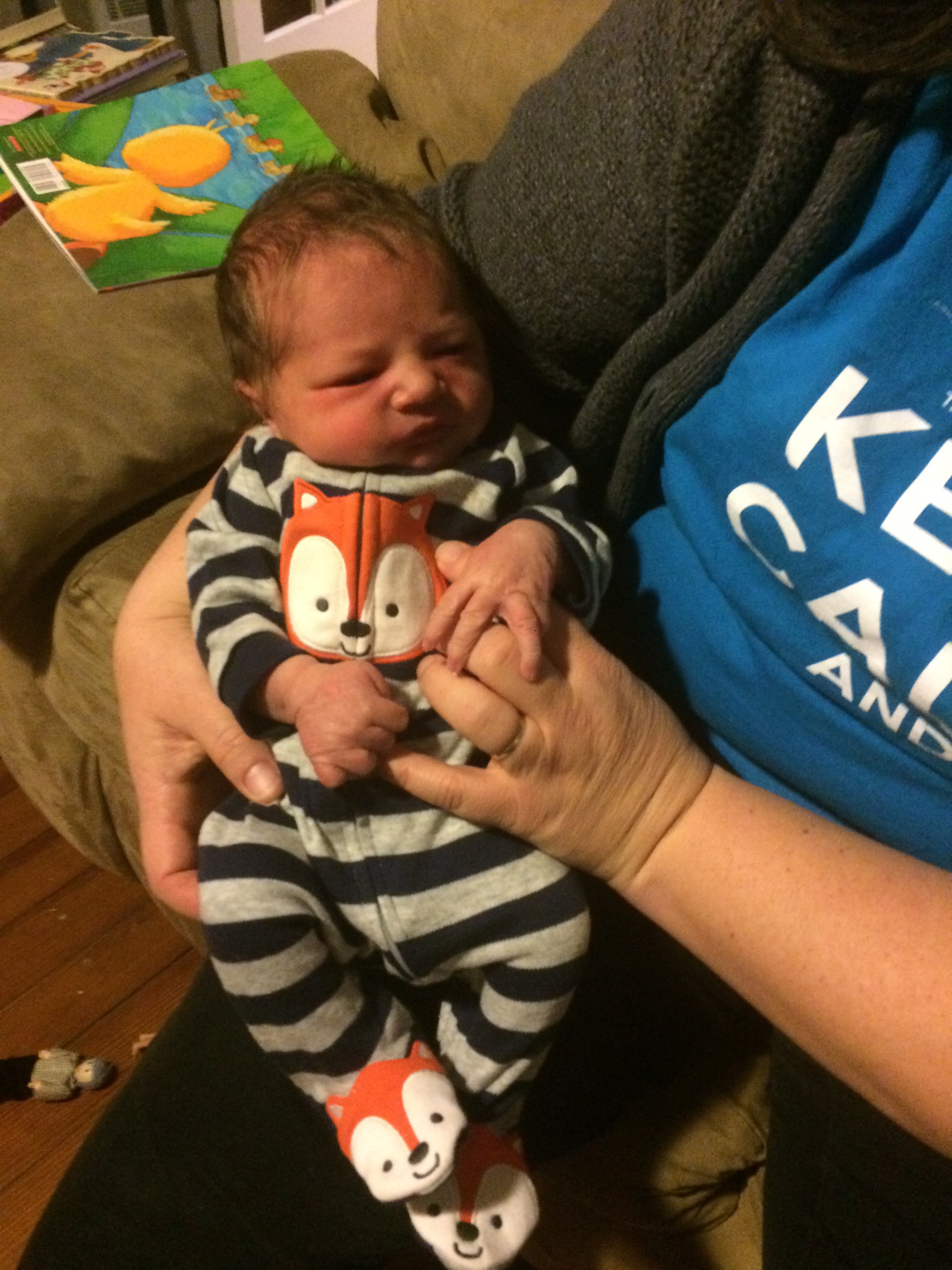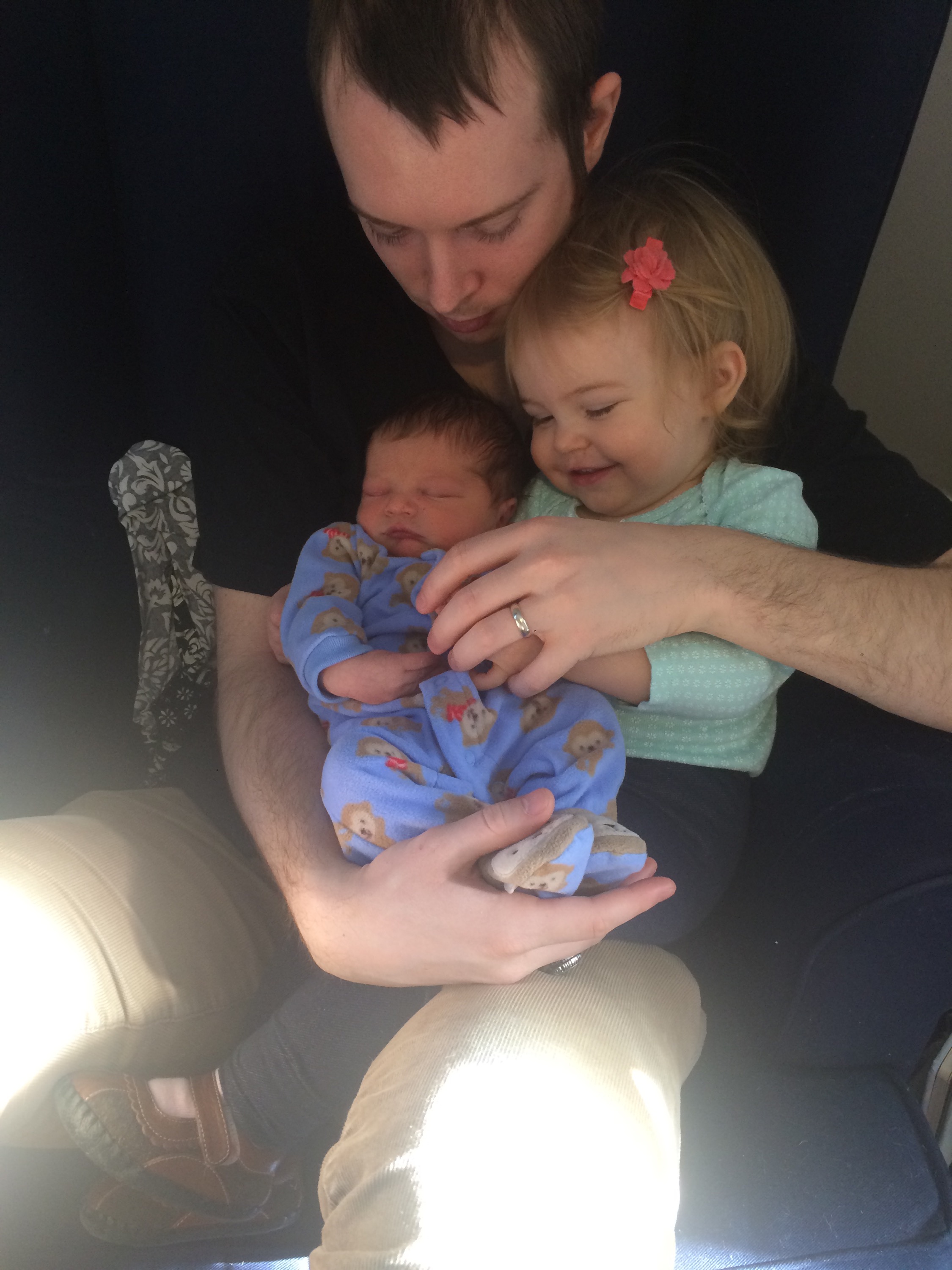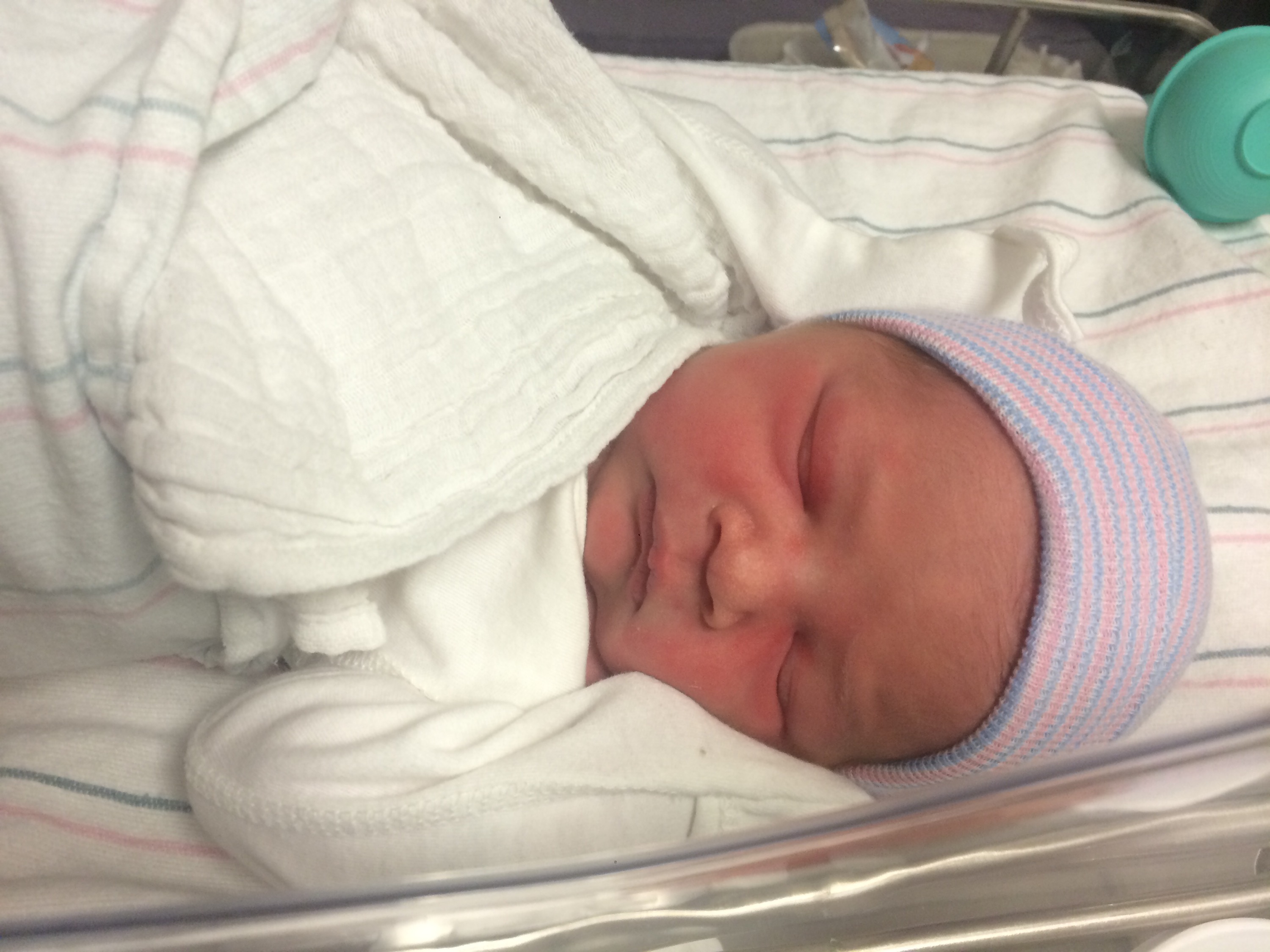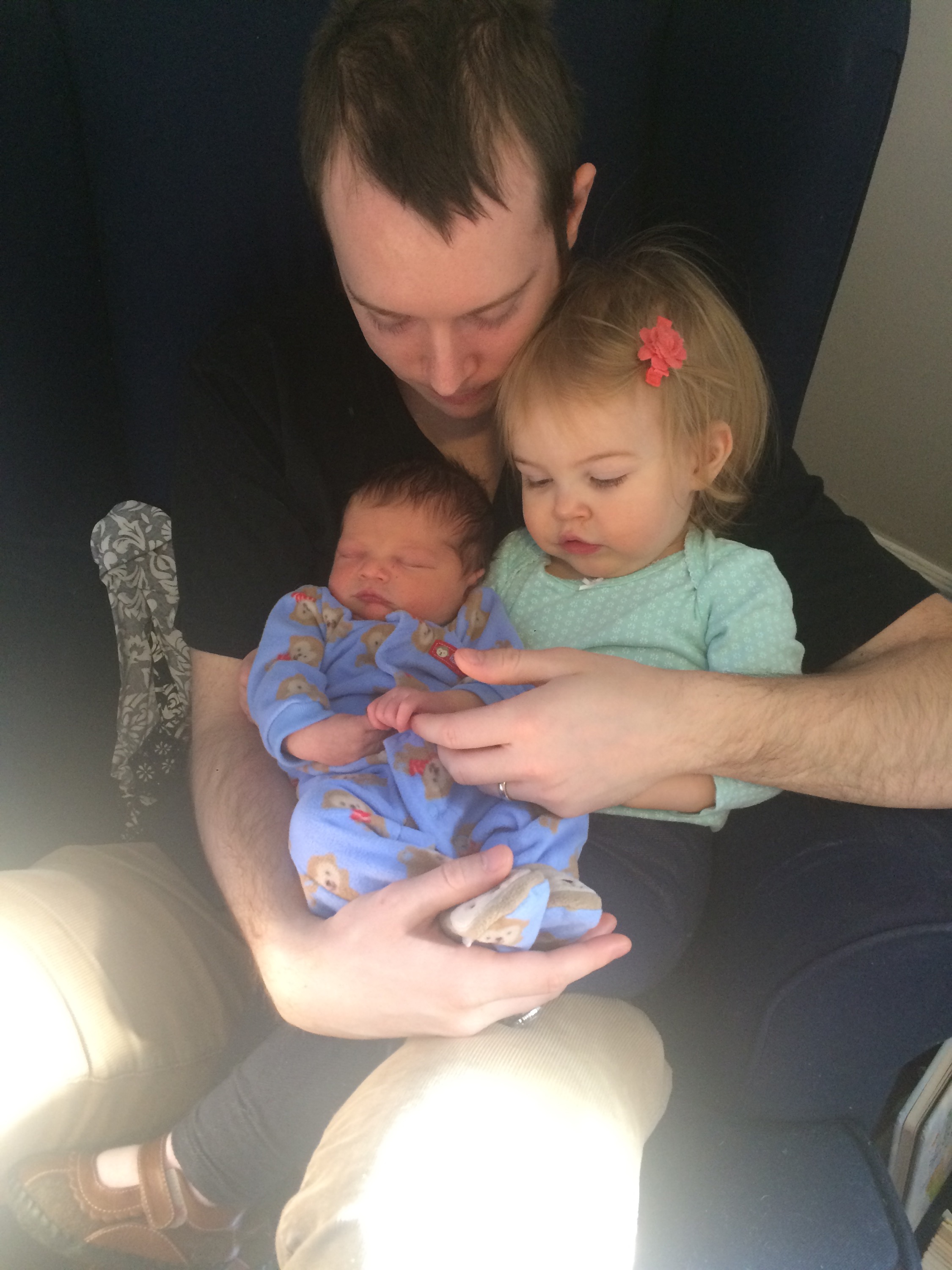 Yesterday was a pretty uneventful day in the hospital. Killian slept a lot, Chris went home and slept in the morning while my mom came here to hold him, my dad also came by in the morning to see him before he leaves for California, Mary Kyle came and ate dinner with us, and Rane and Molly came by in the evening. I took a nap in the afternoon but mostly can’t sleep here because people are constantly coming in and out. We are expecting to be released this afternoon and are very excited to introduce Killian to Helen Jeanette, but we’re also very nervous about teaching her to be gentle and not touch without mommy and daddy there.