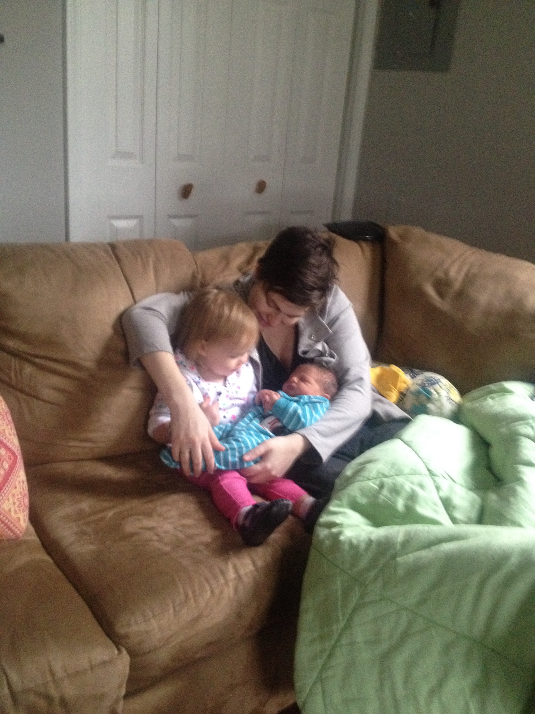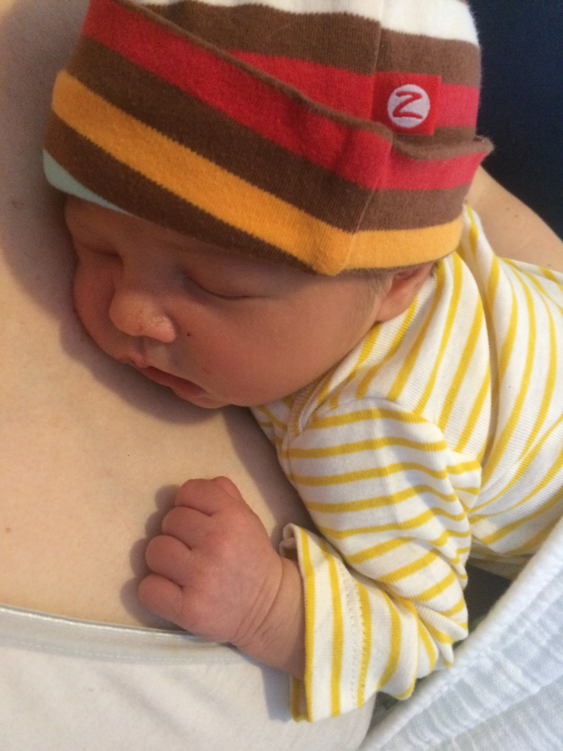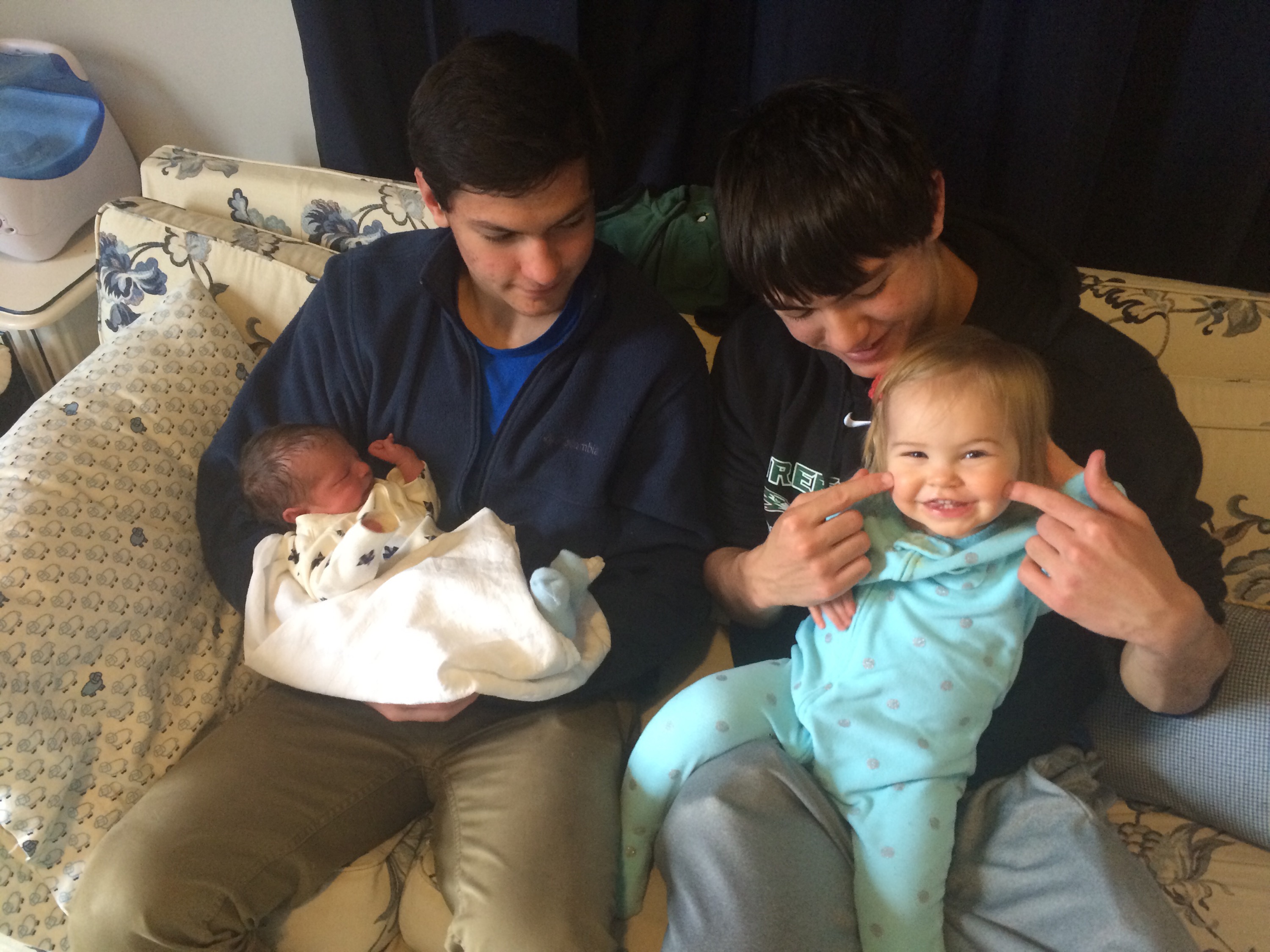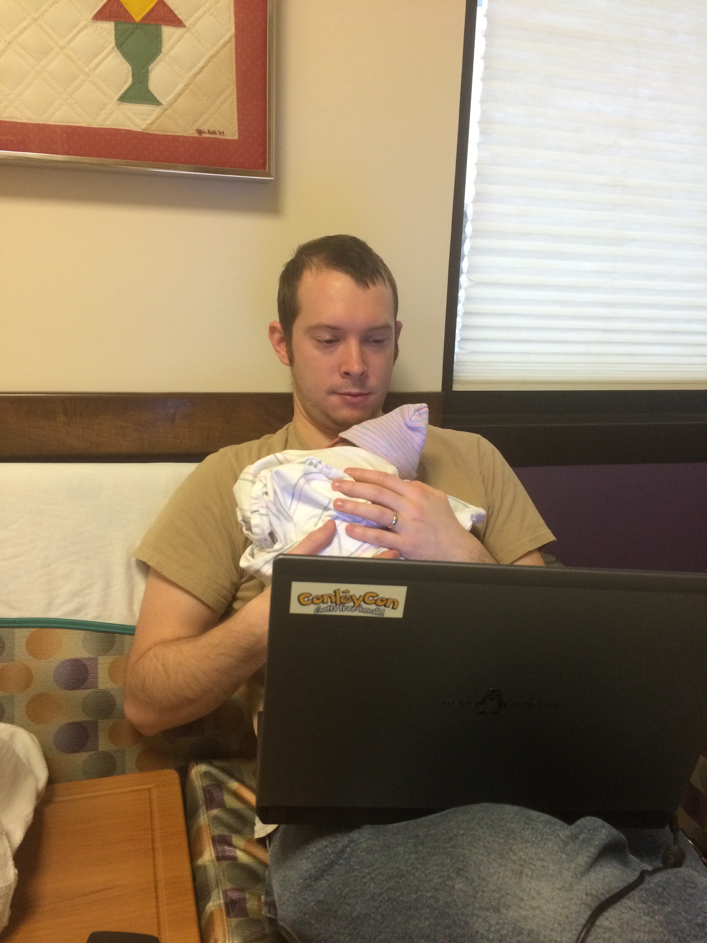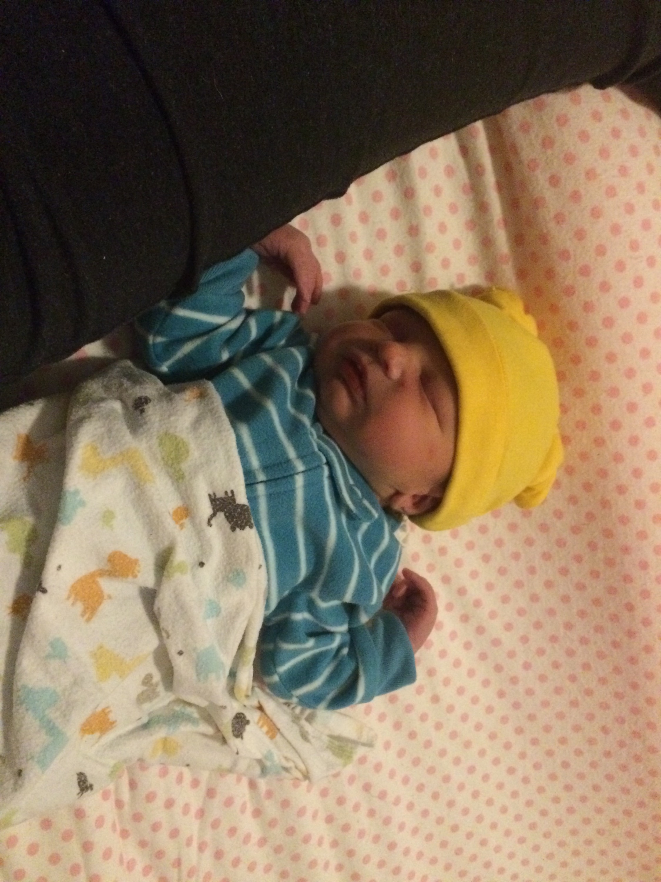 Yesterday was a pretty uneventful day in the hospital. Killian slept a lot, Chris went home and slept in the morning while my mom came here to hold him, my dad also came by in the morning to see him before he leaves for California, Mary Kyle came and ate dinner with us, and Rane and Molly came by in the evening. I took a nap in the afternoon but mostly can’t sleep here because people are constantly coming in and out. We are expecting to be released this afternoon and are very excited to introduce Killian to Helen Jeanette, but we’re also very nervous about teaching her to be gentle and not touch without mommy and daddy there.
