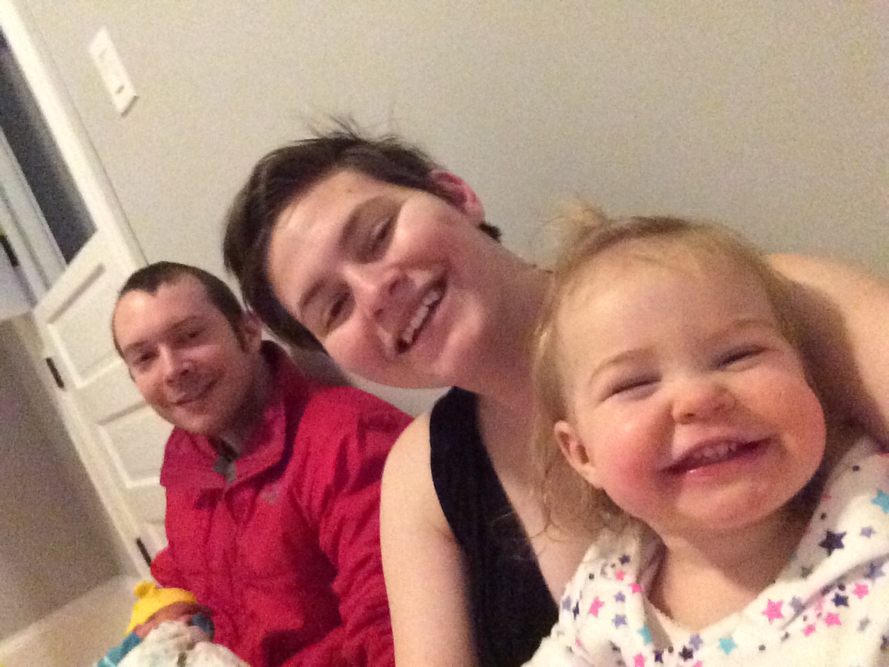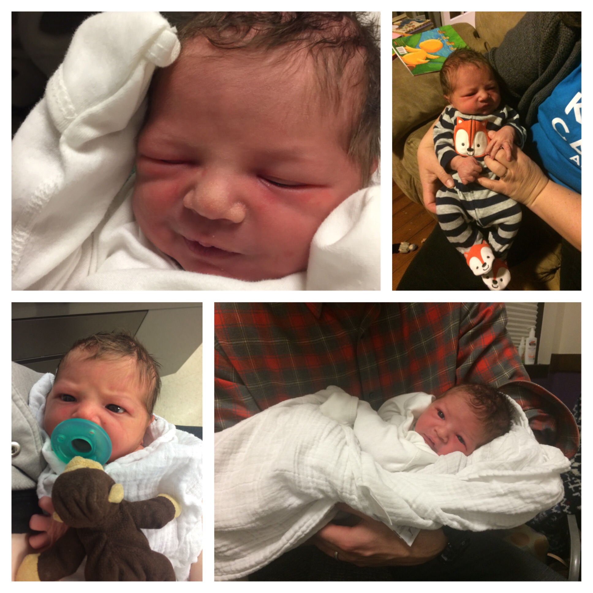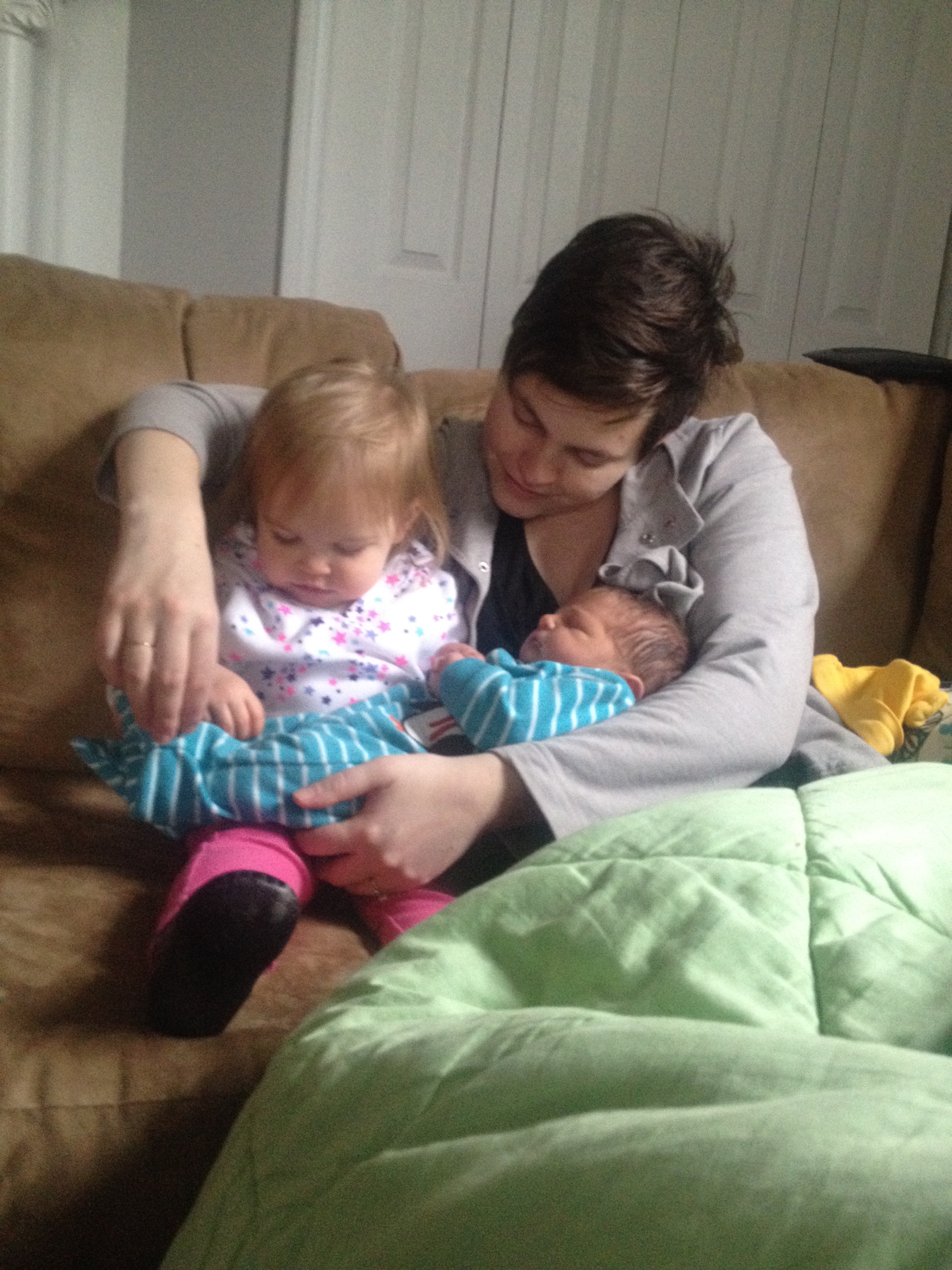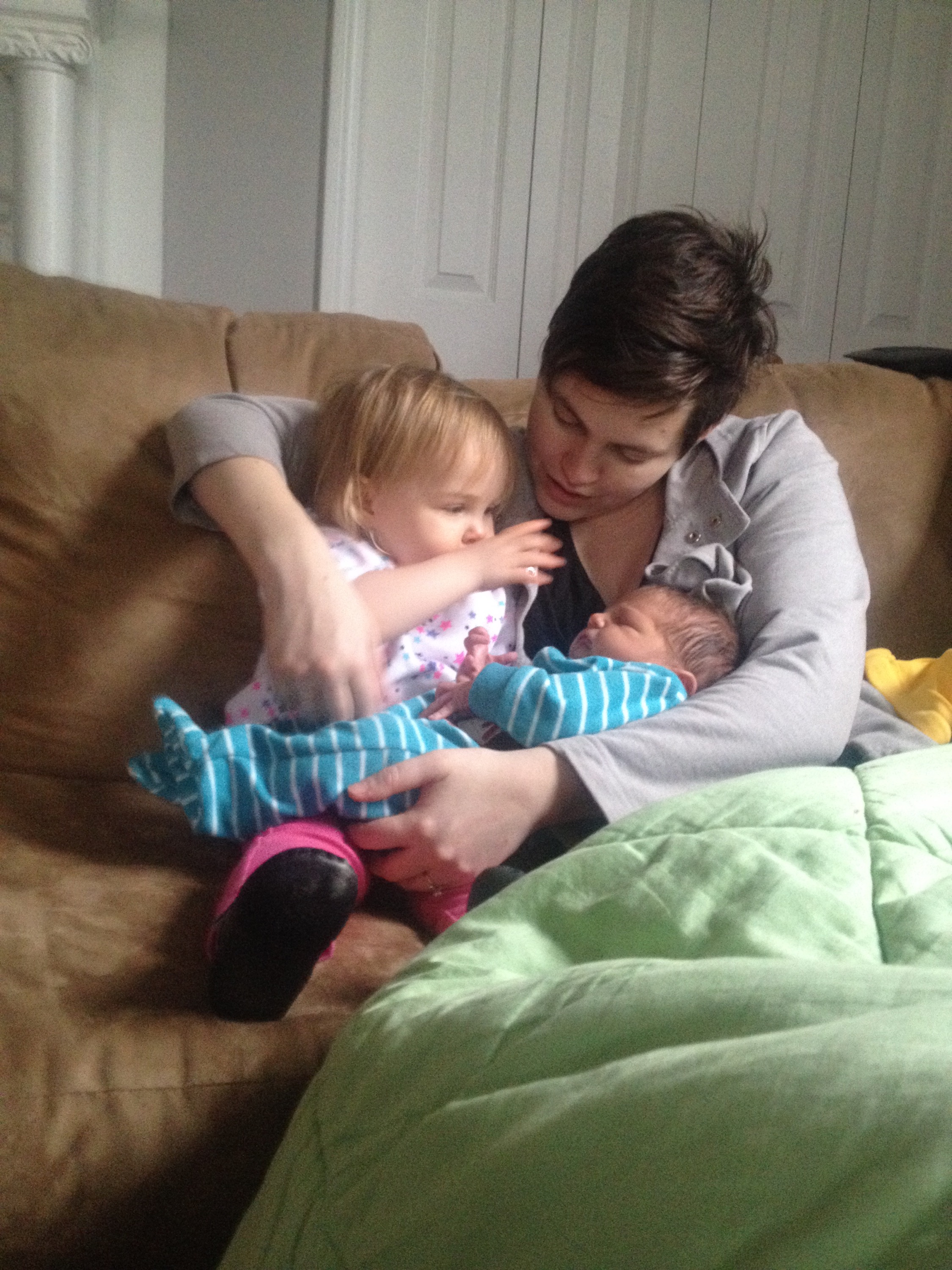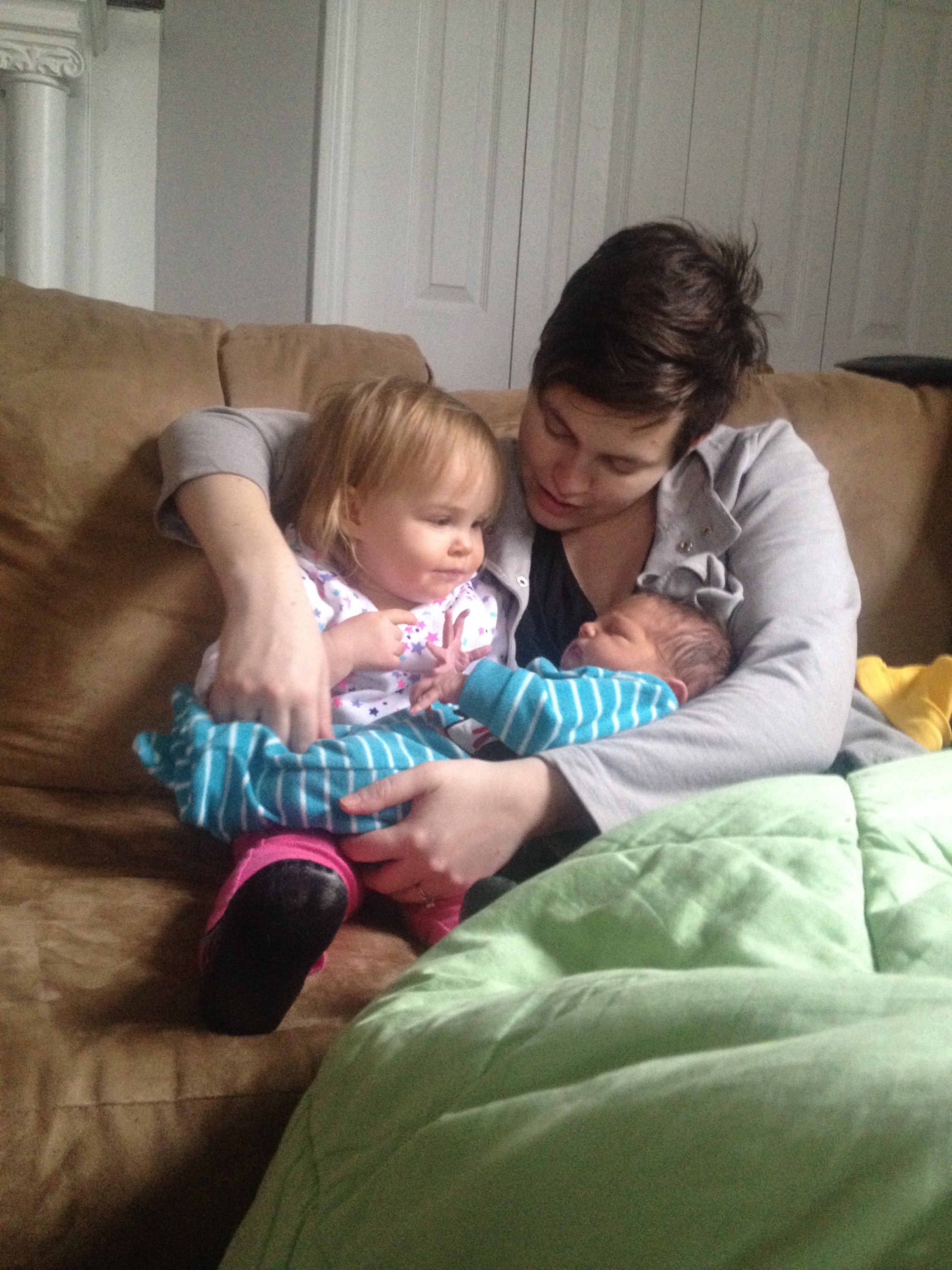 Yesterday was a pretty uneventful day in the hospital. Killian slept a lot, Chris went home and slept in the morning while my mom came here to hold him, my dad also came by in the morning to see him before he leaves for California, Mary Kyle came and ate dinner with us, and Rane and Molly came by in the evening. I took a nap in the afternoon but mostly can’t sleep here because people are constantly coming in and out. We are expecting to be released this afternoon and are very excited to introduce Killian to Helen Jeanette, but we’re also very nervous about teaching her to be gentle and not touch without mommy and daddy there.