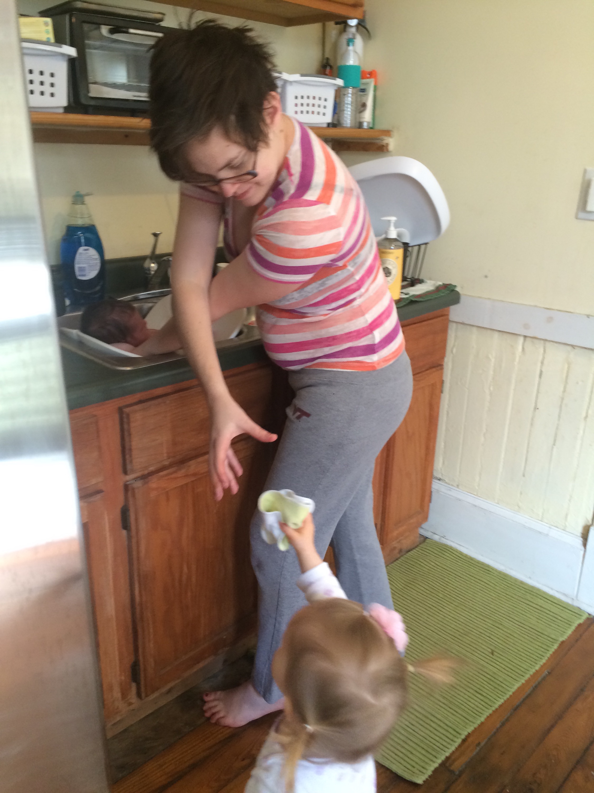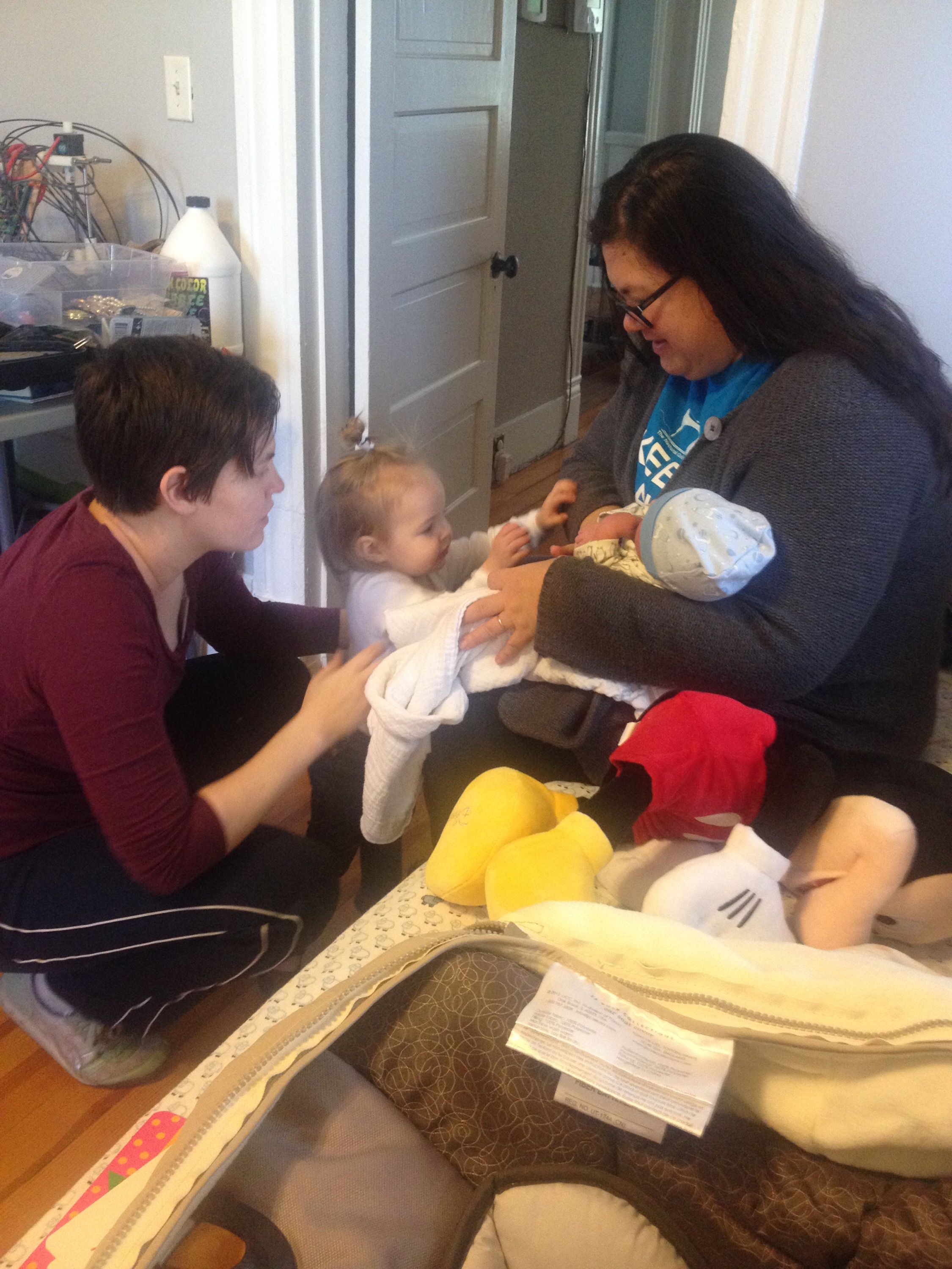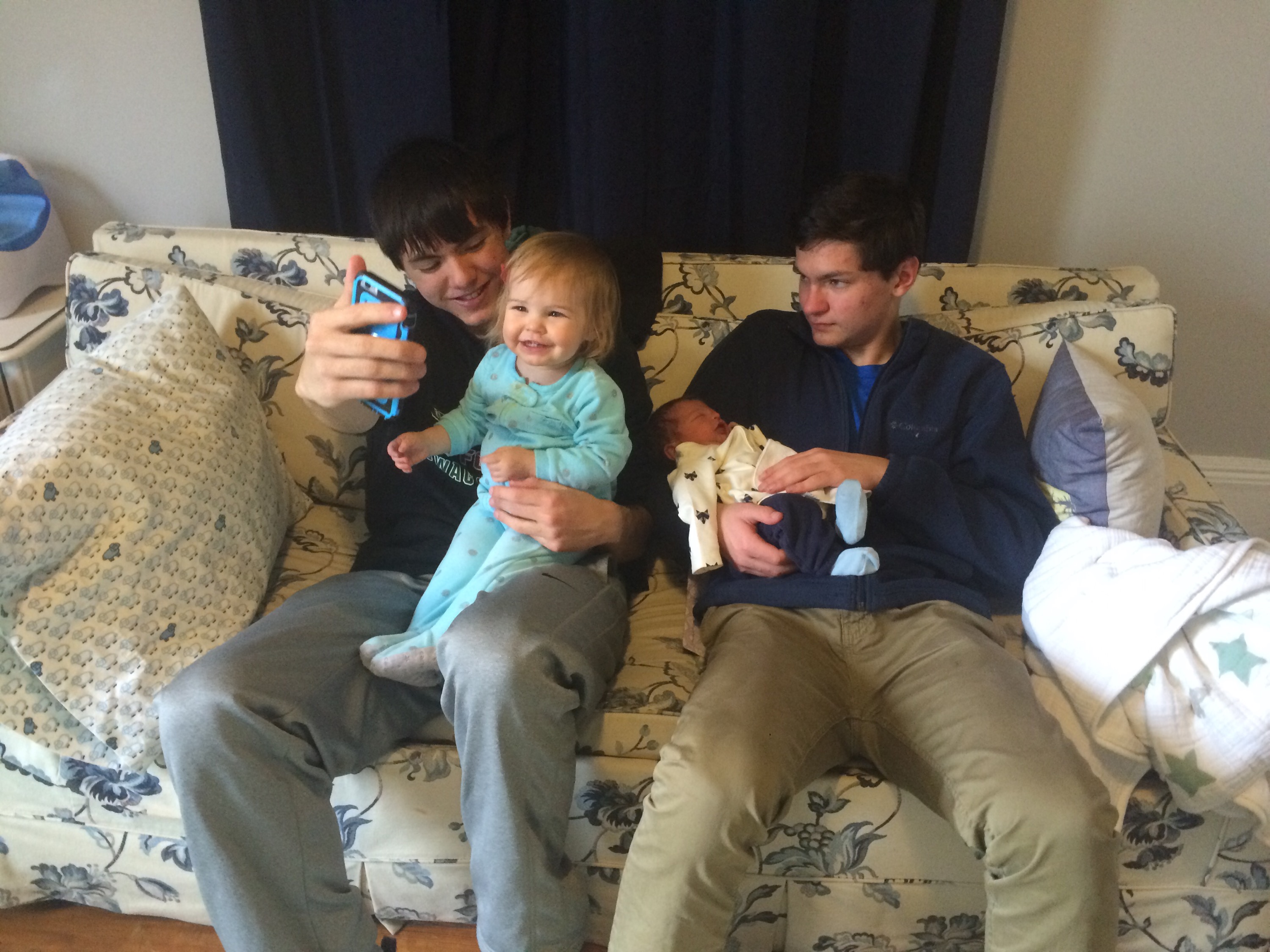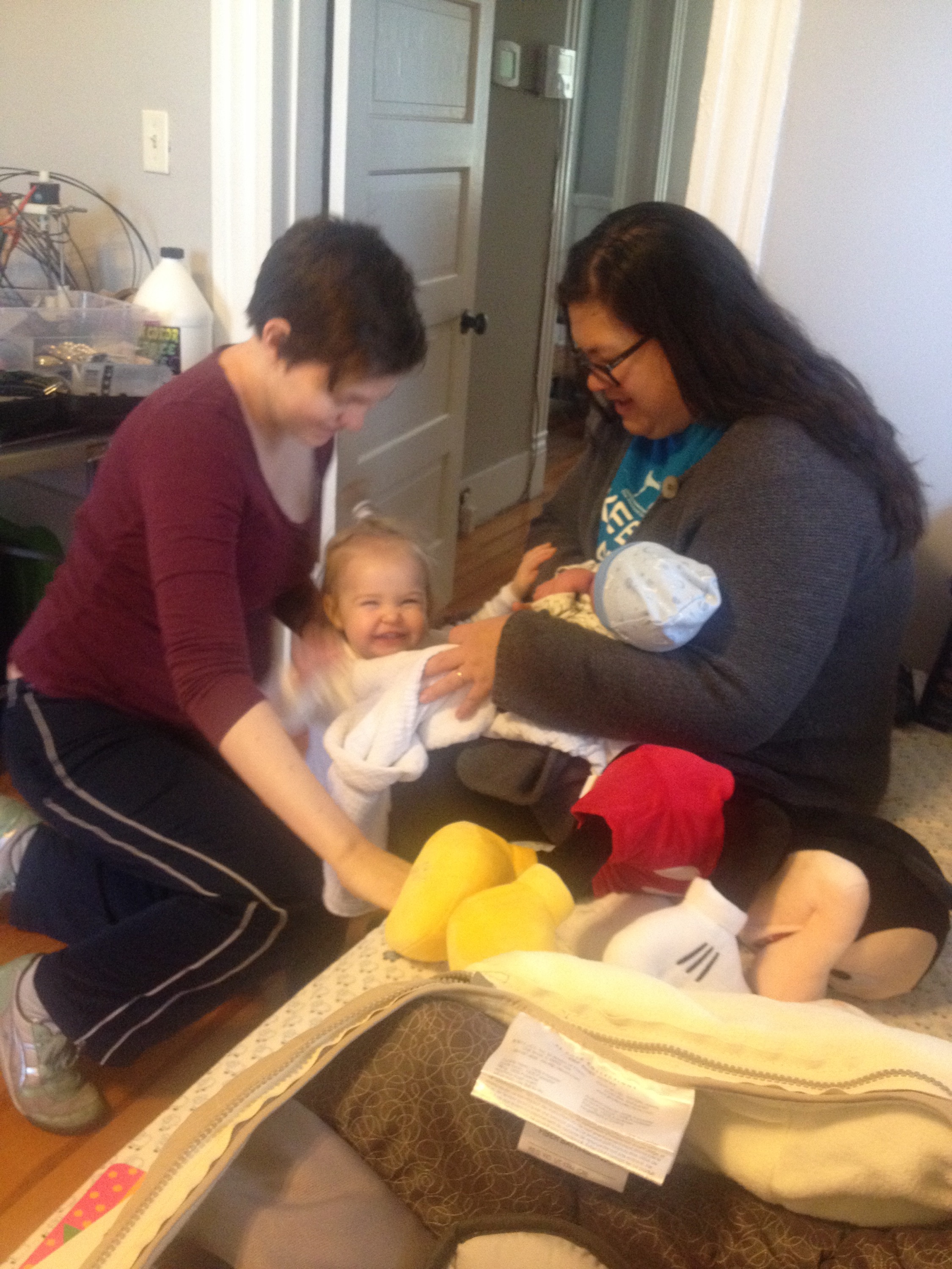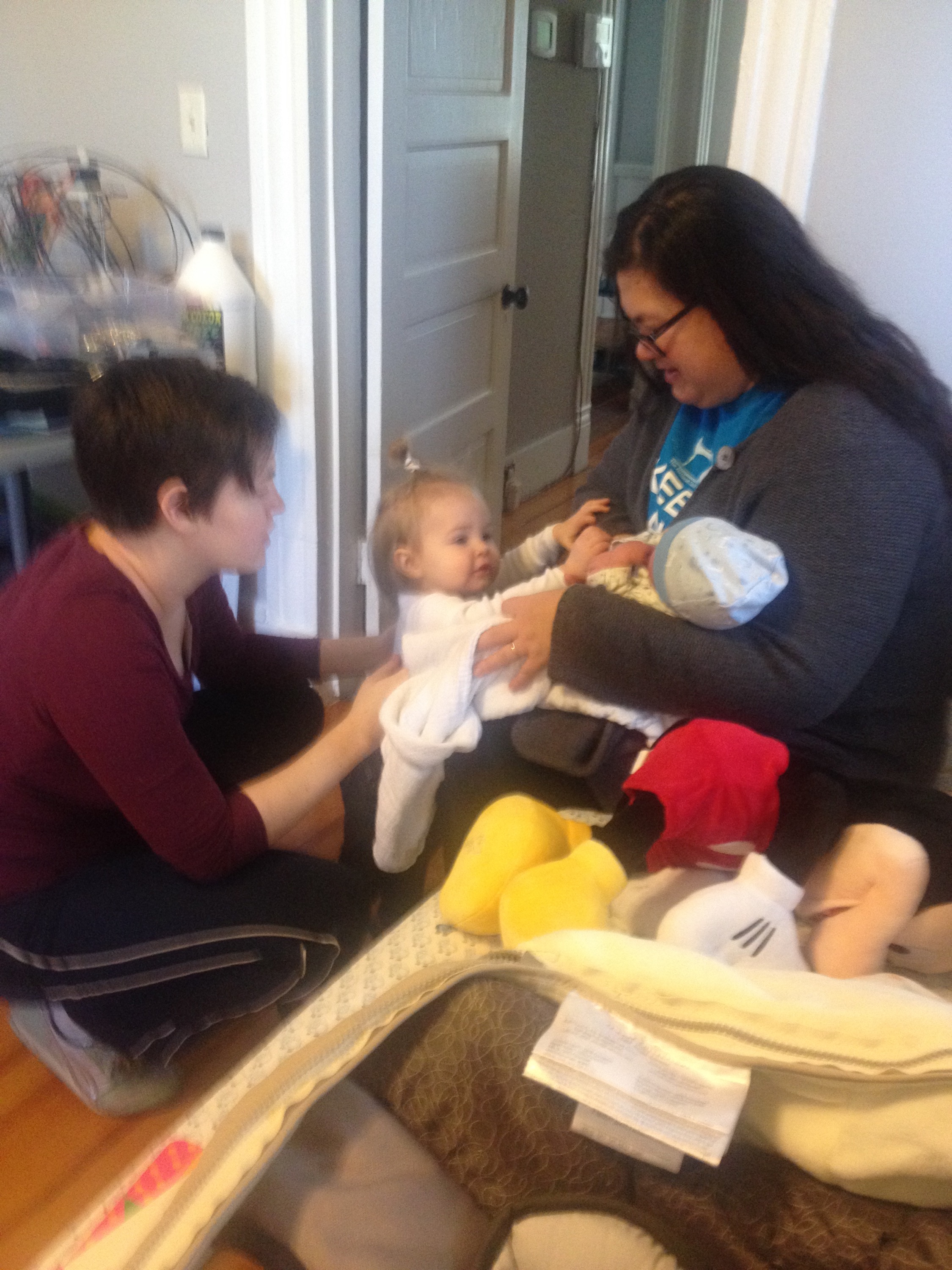 Yesterday was a pretty uneventful day in the hospital. Killian slept a lot, Chris went home and slept in the morning while my mom came here to hold him, my dad also came by in the morning to see him before he leaves for California, Mary Kyle came and ate dinner with us, and Rane and Molly came by in the evening. I took a nap in the afternoon but mostly can’t sleep here because people are constantly coming in and out. We are expecting to be released this afternoon and are very excited to introduce Killian to Helen Jeanette, but we’re also very nervous about teaching her to be gentle and not touch without mommy and daddy there.