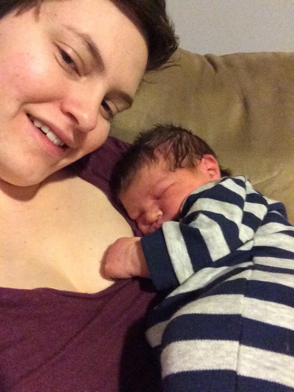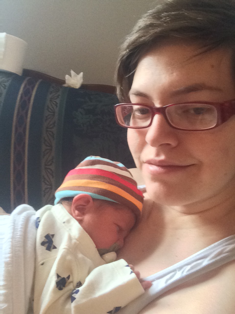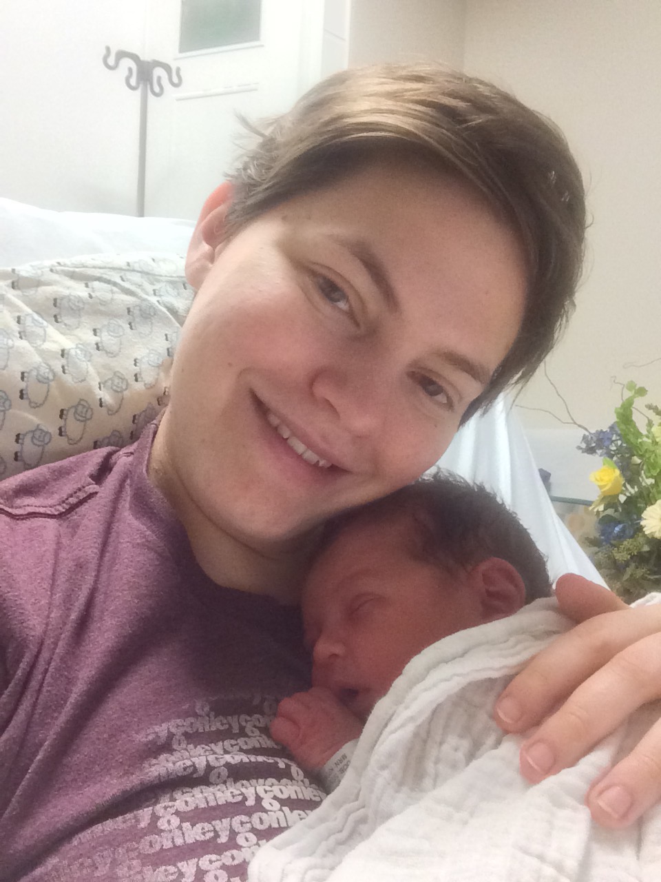 With both babies I was immediately wide awake as soon as they were born, however this time around I started to crash quickly and I told Chris and the nurse I wouldn’t be able to breastfeed because I couldn’t stay awake. I remember thinking how strange it was that after everything I’d just gone through I couldn’t hold it together enough to breastfeed for 20 minutes. Fortunately the nurse recognized that I wasn’t so much falling asleep as passing out and was able to get me some sugary foods and adjust my iv to help me stay awake. I had some low blood pressure issues this pregnancy that resulted in my passing out some in my second trimester, and this was evidently more of the same. Because my blood pressure was so low they weren’t able to remove us to the recovery room for an extra couple hours so we were able to get a little bit of sleep after he ate.