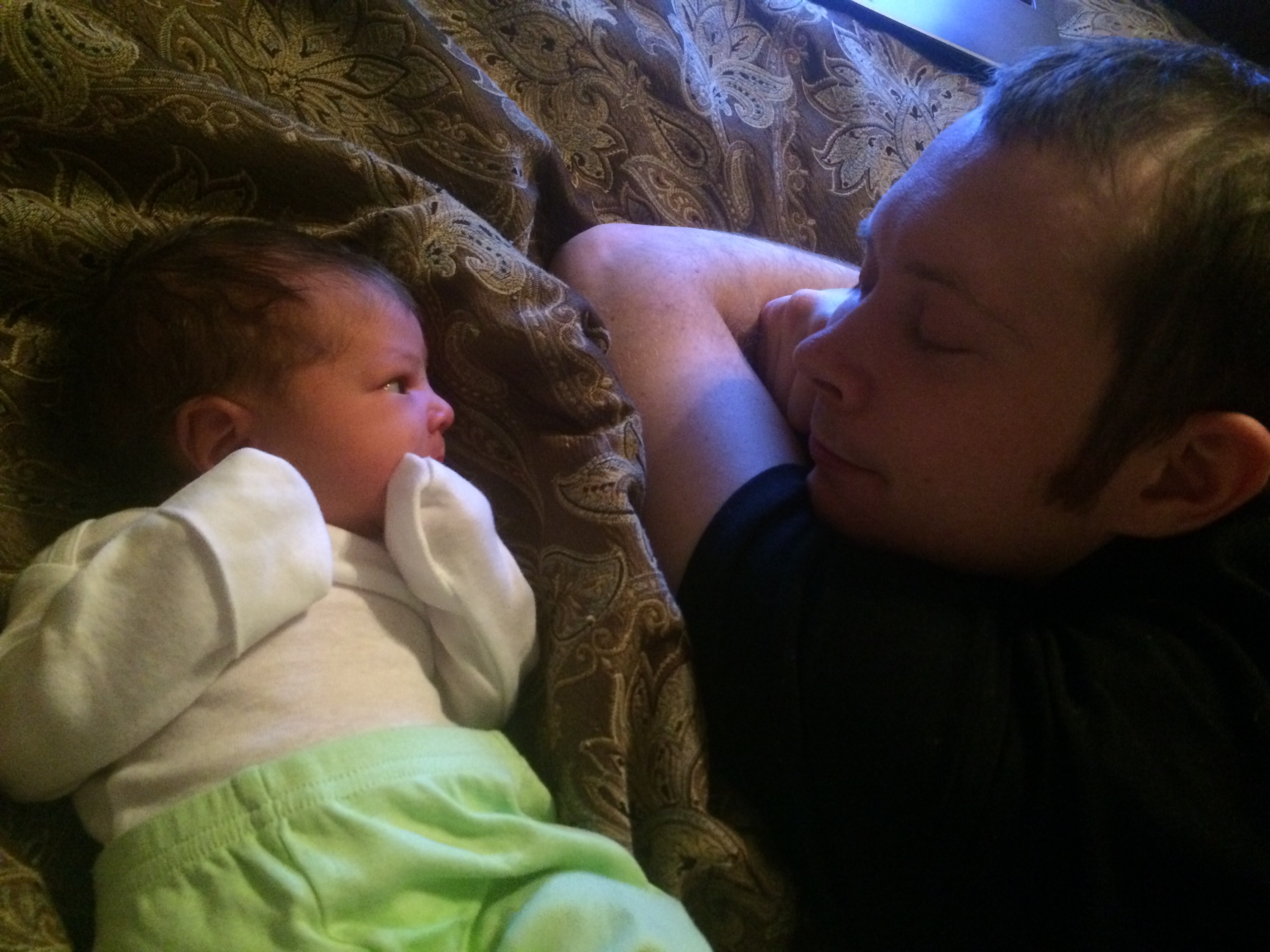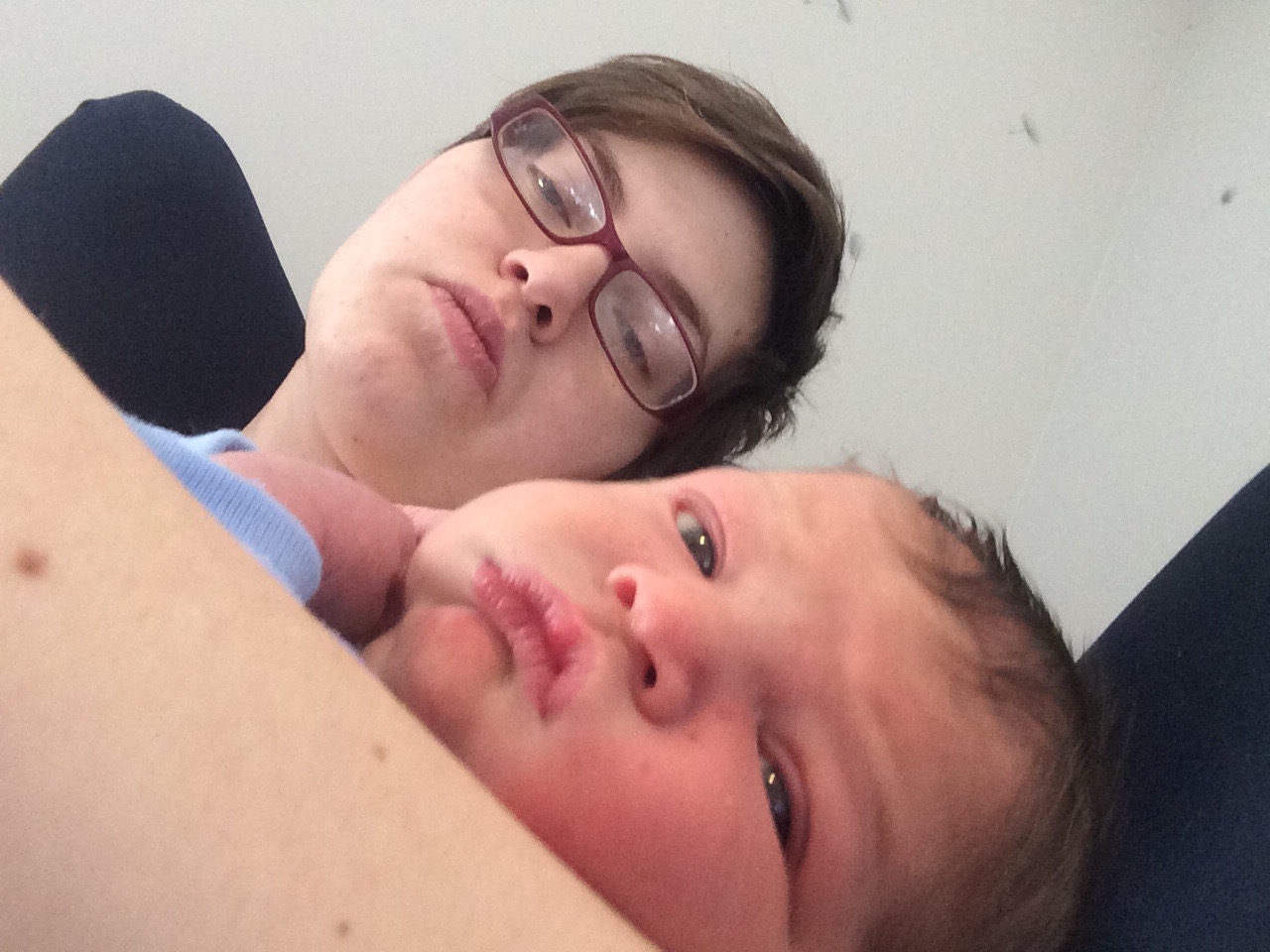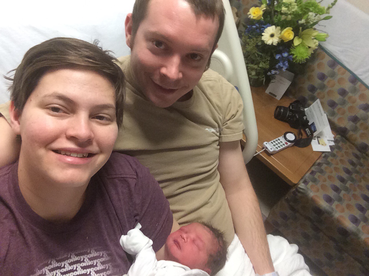 With both babies I was immediately wide awake as soon as they were born, however this time around I started to crash quickly and I told Chris and the nurse I wouldn’t be able to breastfeed because I couldn’t stay awake. I remember thinking how strange it was that after everything I’d just gone through I couldn’t hold it together enough to breastfeed for 20 minutes. Fortunately the nurse recognized that I wasn’t so much falling asleep as passing out and was able to get me some sugary foods and adjust my iv to help me stay awake. I had some low blood pressure issues this pregnancy that resulted in my passing out some in my second trimester, and this was evidently more of the same. Because my blood pressure was so low they weren’t able to remove us to the recovery room for an extra couple hours so we were able to get a little bit of sleep after he ate.
