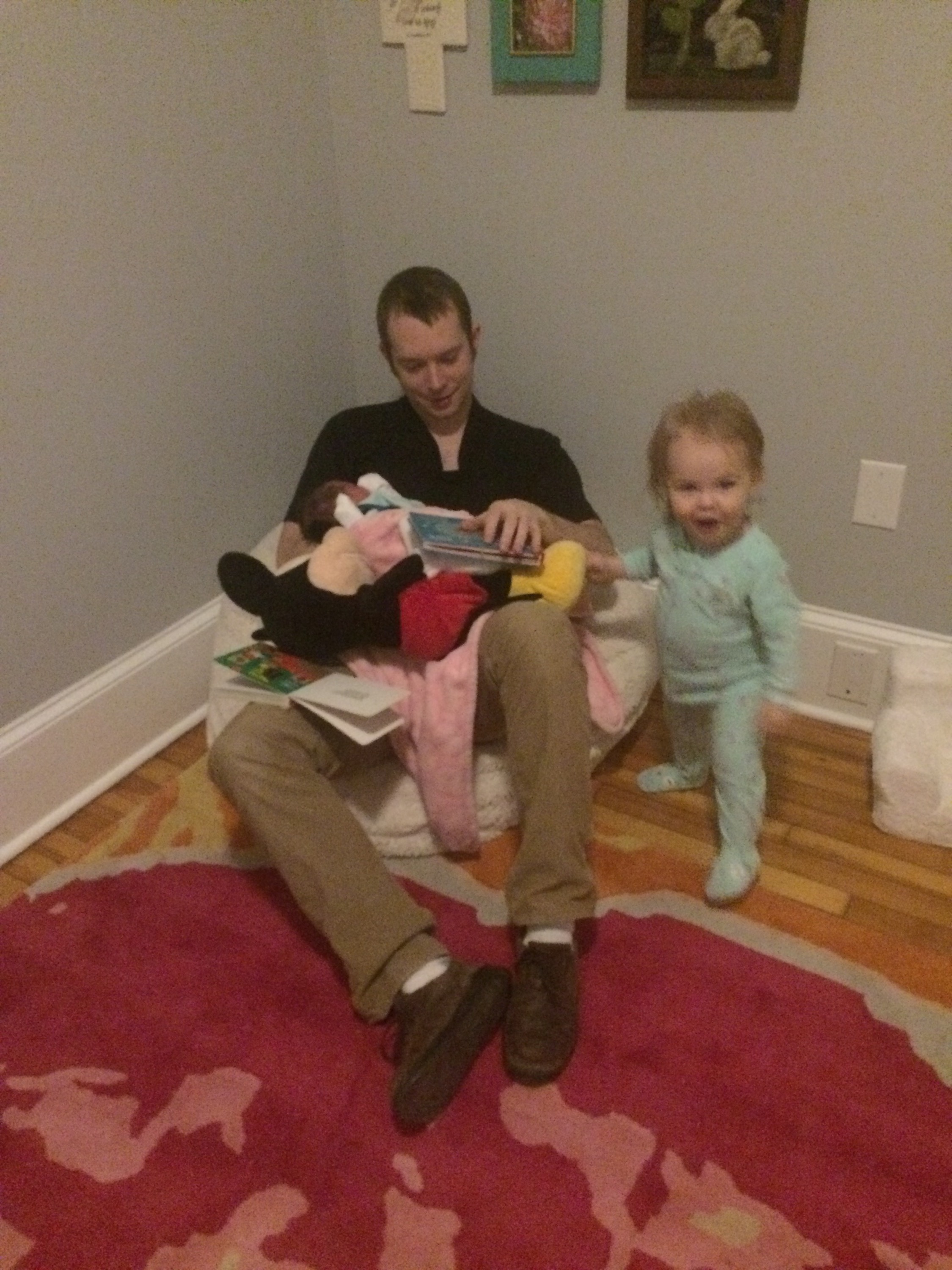 The next couple hours we basically just prepared because my contractions started ramping up again as soon as I left the hospital. Chris played with Helen Jeanette some while I packed a few last minute things and then Chris and I headed to target to pick out a gift for Helen Jeanette from Killian. We had a good time selecting way too many toys and books and then narrowing it down to a big stuffed Mickey (thanks to some Christmas books from Uncles Daniel and Rhys she says ‘mickey’ excitedly whenever she sees him) and two books. This was still probably 2 items too many but books are my weakness because they’re educational and when we get new books we don’t have to read the old ones quite as often.