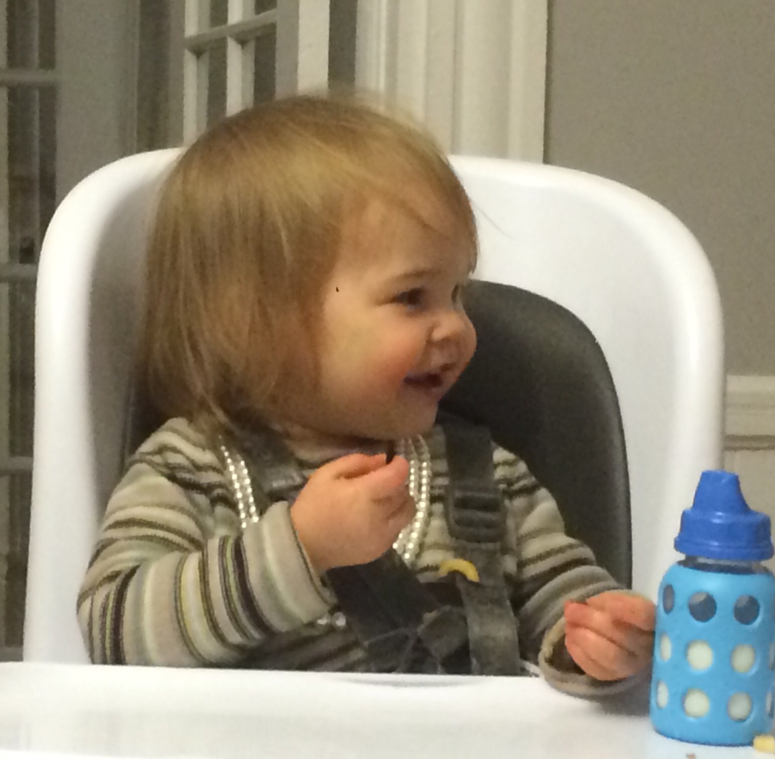 Opa recently taught Helen Jeanette to do ‘knucks’ where you fist bump but then your hands explode as you pull them away. She loves it and grins like crazy when Opa did it to her.
