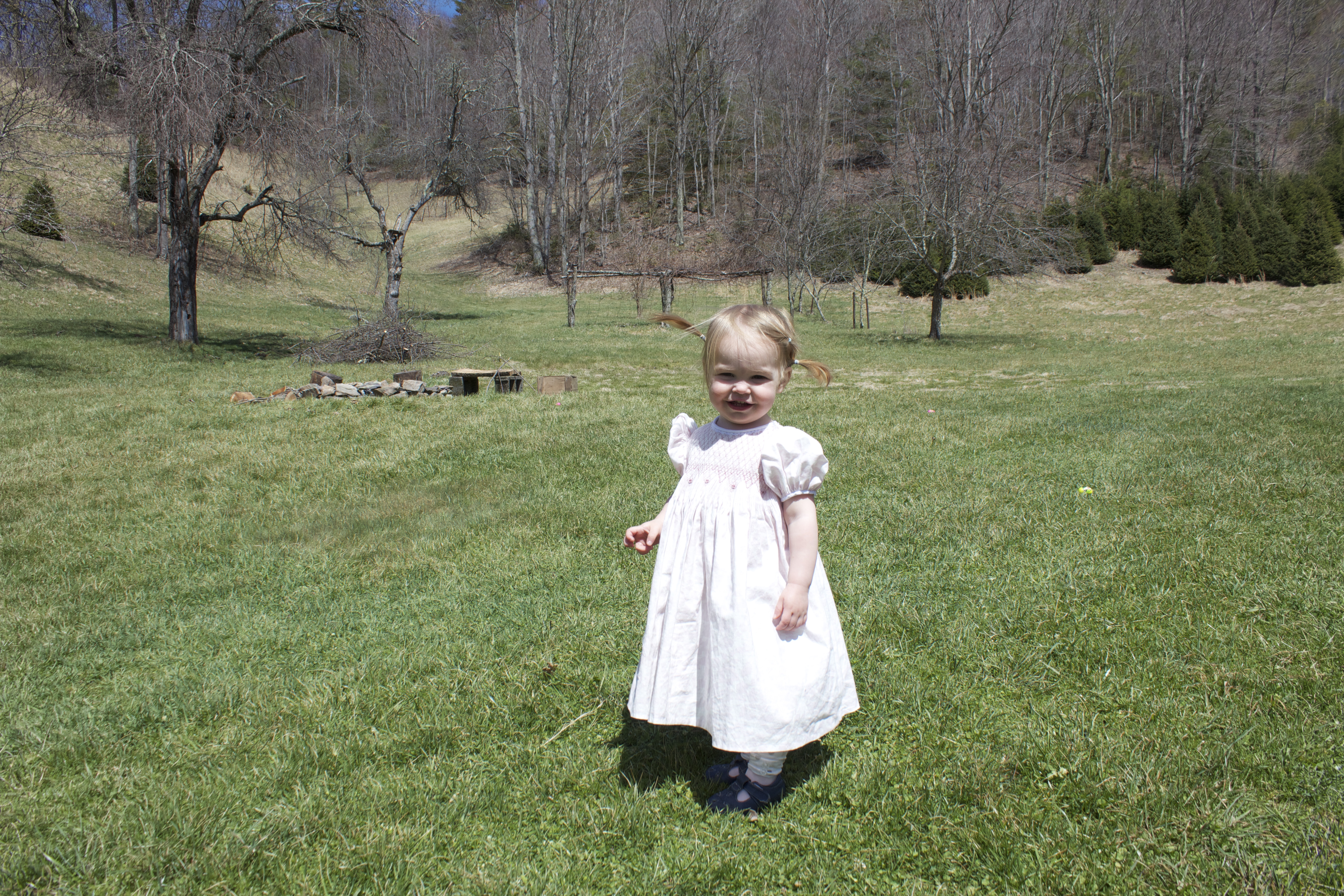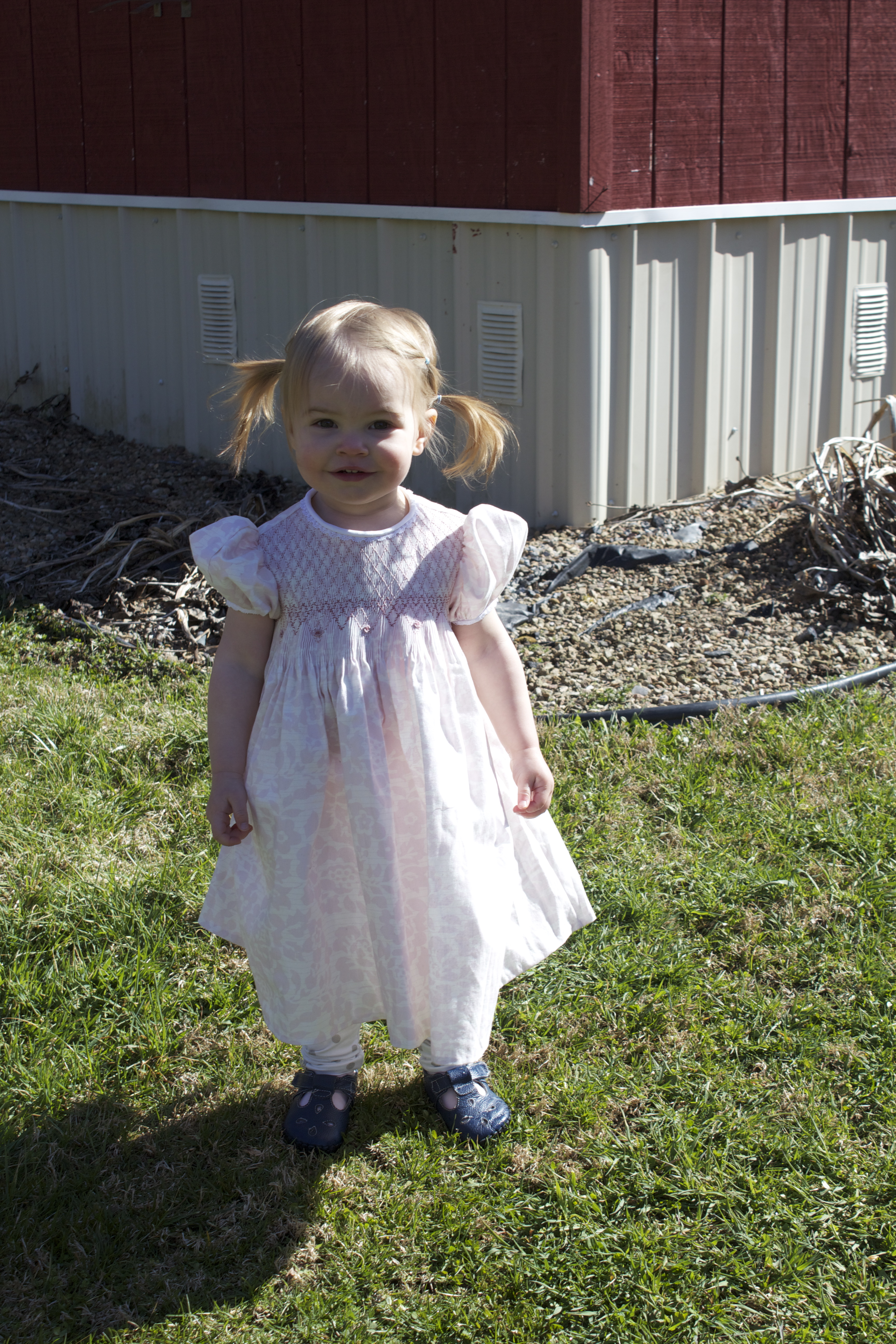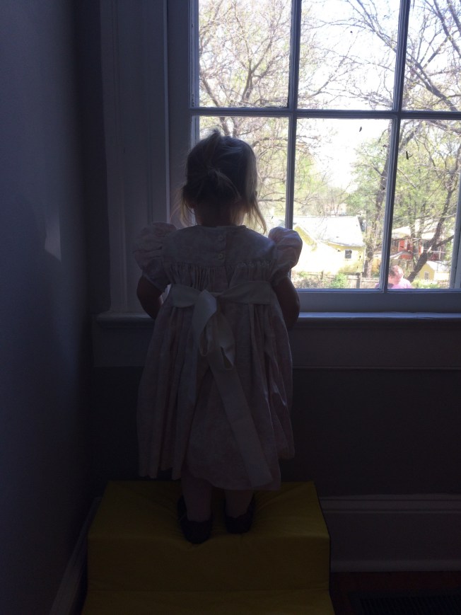Our church rents out the Carolina theatre and occasionally can’t get it. We missed the memo about an alternate location today and since we walked to church and were a good 20 minutes late we missed it entirely. This was the only picture I got of Helen Jeanette in her dress.