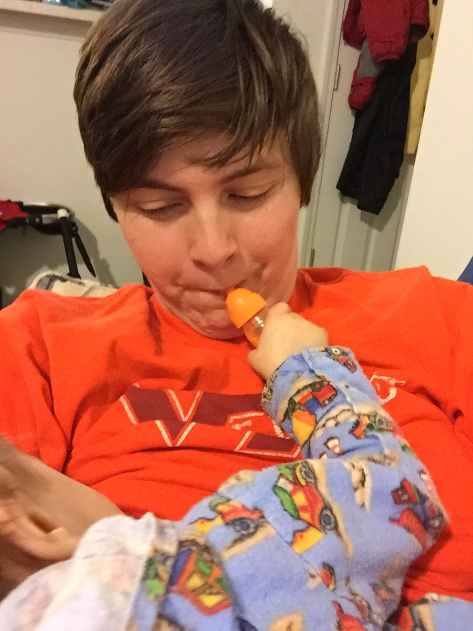 Feeding me a bottle while I feed him a boobie.