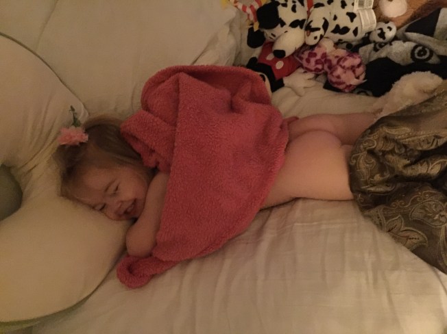 This morning Helen Jeanette climbs into bed and says ‘I’m sleeping with my undies!’ What she meant is that she was cuddling her undies like a blanket, not wearing them.