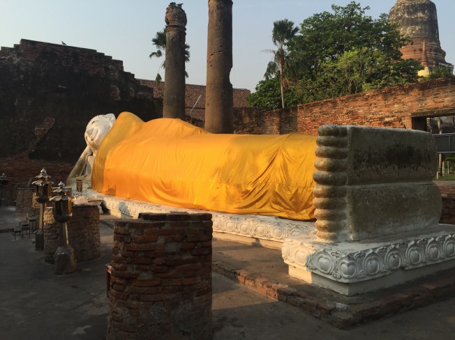 We left the hotel at 6:30 and made the hour drive in enough time to not have to pay admission at the first temple, Wat Lokayasutharam . I don’t think this one could qualify as a ruin since it was largely intact, but it was awesome. All the dozens of Buddah’s surrounding the complex had on orange robes and there was a large reclining Buddah in stone with orange robes as well.