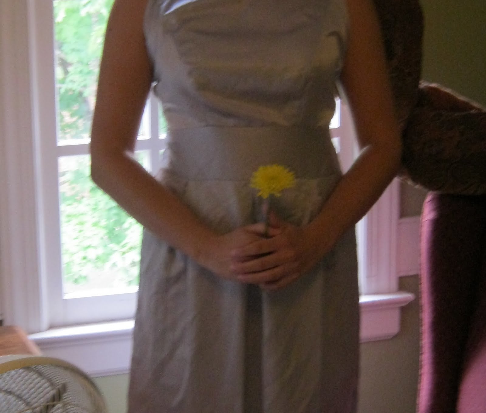 Here’s an example of a single yellow flower against the bridesmaid dresses. The light is bad and it isn’t a rose but you can get an idea of the effect.